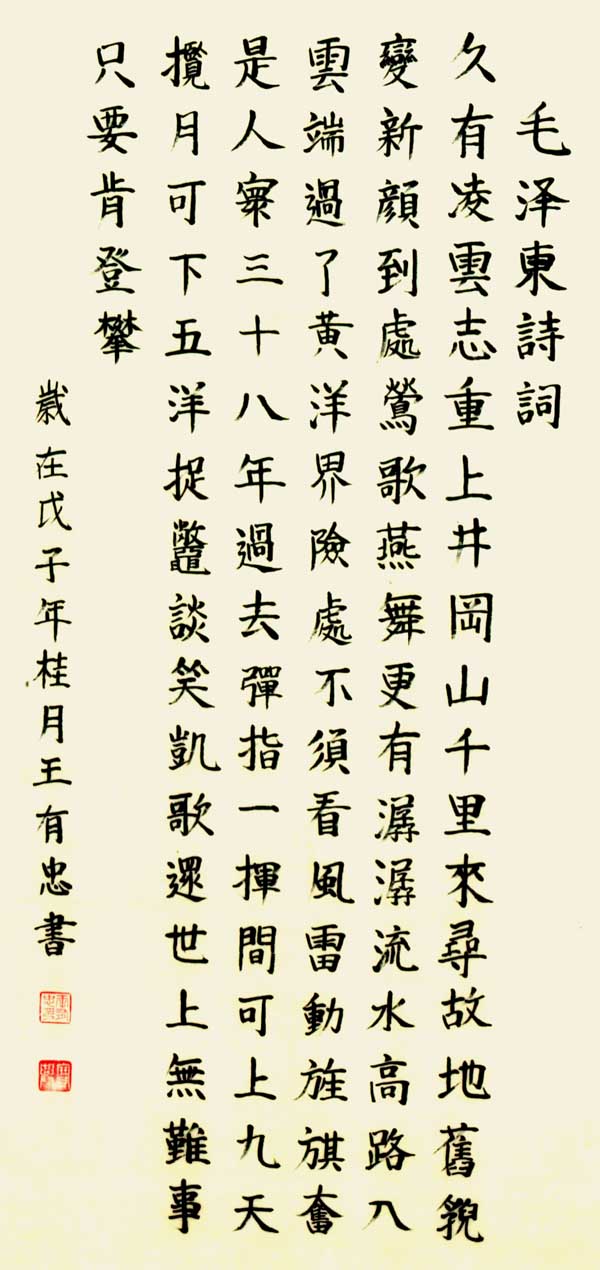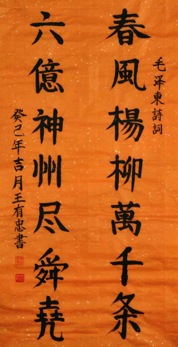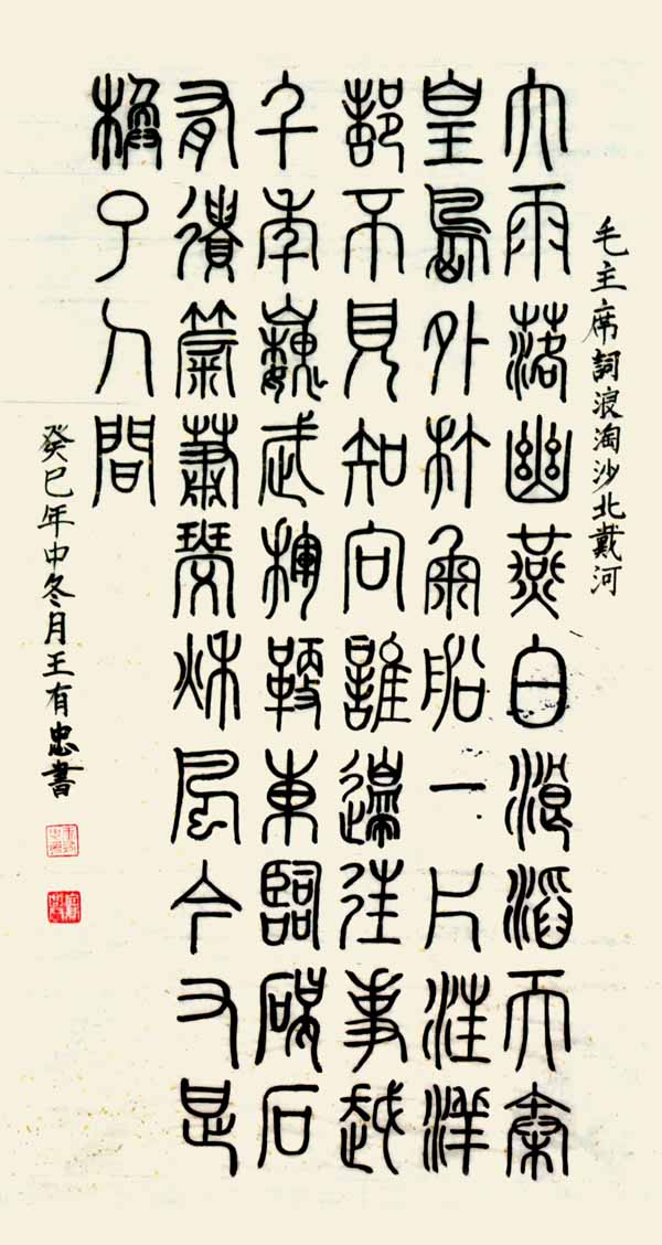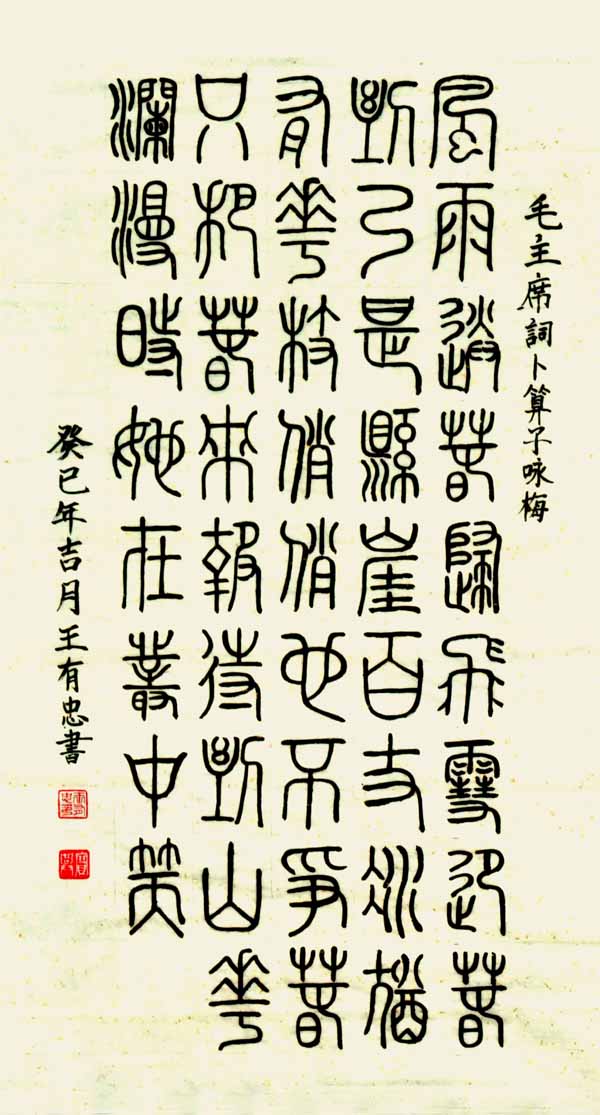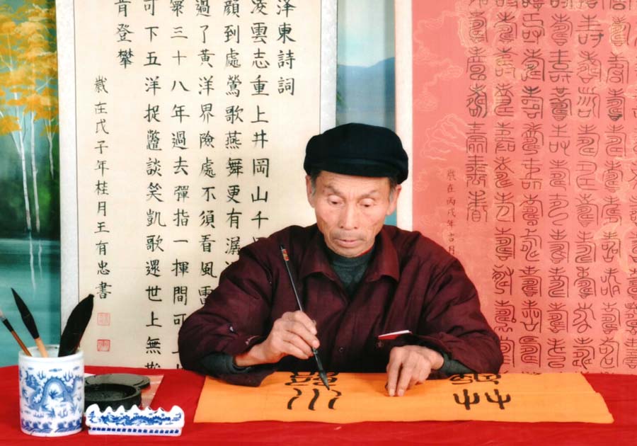 王有忠,字宝兴,号圆宝山人,堂号宝兴堂,笔名王宝兴,山东省青州市人,大学文化,1946年10月生,原益都县食品酿造二厂厂长,系中国老年书画研究会会员。从1964年担任村团支部书记期间爱好书法,经常抄写古代人的书法碑帖,勤学用功,在集市上经常书写春联篆书等。1965年参加工作,1996年退休后从事专业书法篆刻。