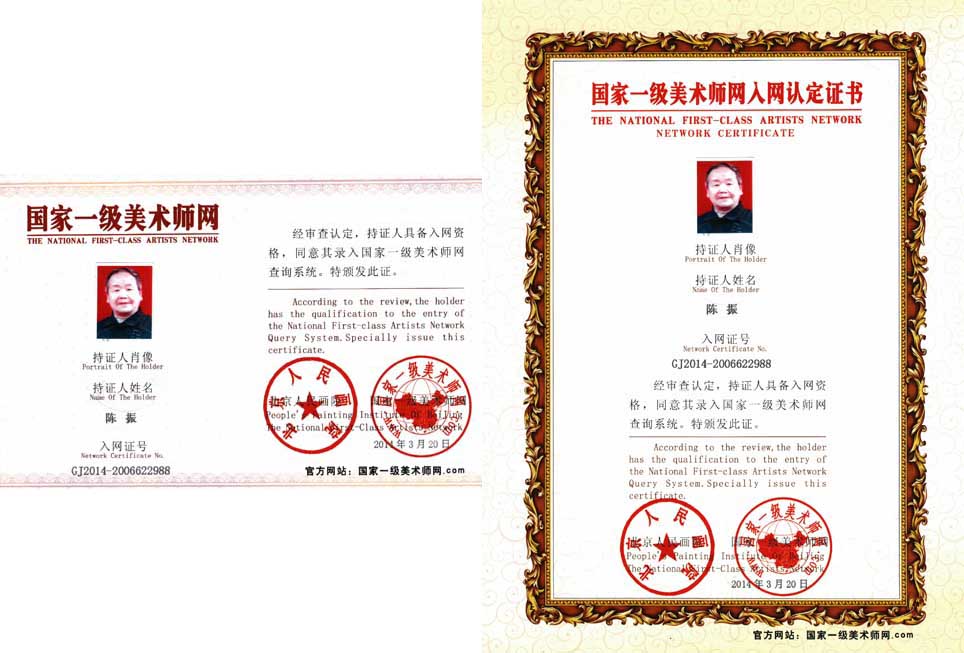 陈振,字益民,号沉着,笔名秦晋。男,汉族,陕西蒲城荆姚中街人,1933年4月1日生于山西平遥县新道街鹦哥巷王家大院。大专毕业,中共党员,高级政工师,高级美术师,中国老年书画研究会会员,陕西大众书画研究院副院长。自幼热爱诗、书、画、印、师承于右任刘允蒸柯璜爷爷,茹士安高乐三郭西民老师,三岁在平遥以画鹦鹉称奇。在各学校均被选为墙报委员,以漫画标语、宣传抗日救国。在抗美援朝战场以《三哎呀》等讽刺连环画刊登《志愿军报》。协助惠世恭省长创建陕西老年书画学会,并任理事兼首席秘书长。擅章草、国画。画风勾勒精细,气势恢宏,色彩清丽。作品《大阅兵》获全国总工会成立70周年及邓小平9 0诞辰全国书画大展赛特等奖(附复印证件)书画作品在国内外多有展销收藏入典。
