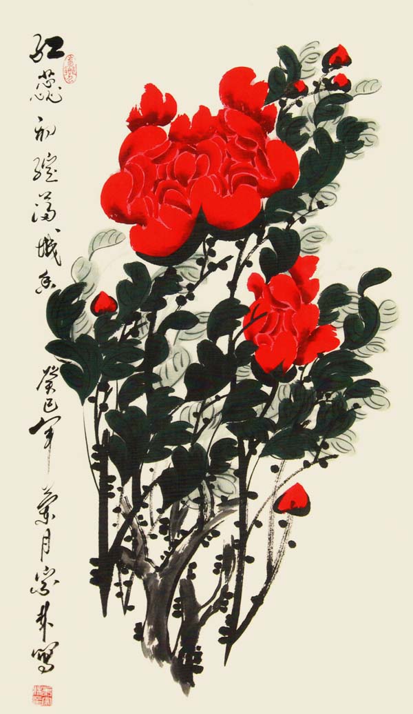易经混元大师评论萧宗林的牡丹,充满着气场,从花的朝向,叶片飘动的方向,可以感觉到一种灵动,可以感觉到风的方向,张扬着牡丹花的雍容华丽,富贵吉祥,渲染着一种喜气的氛围。