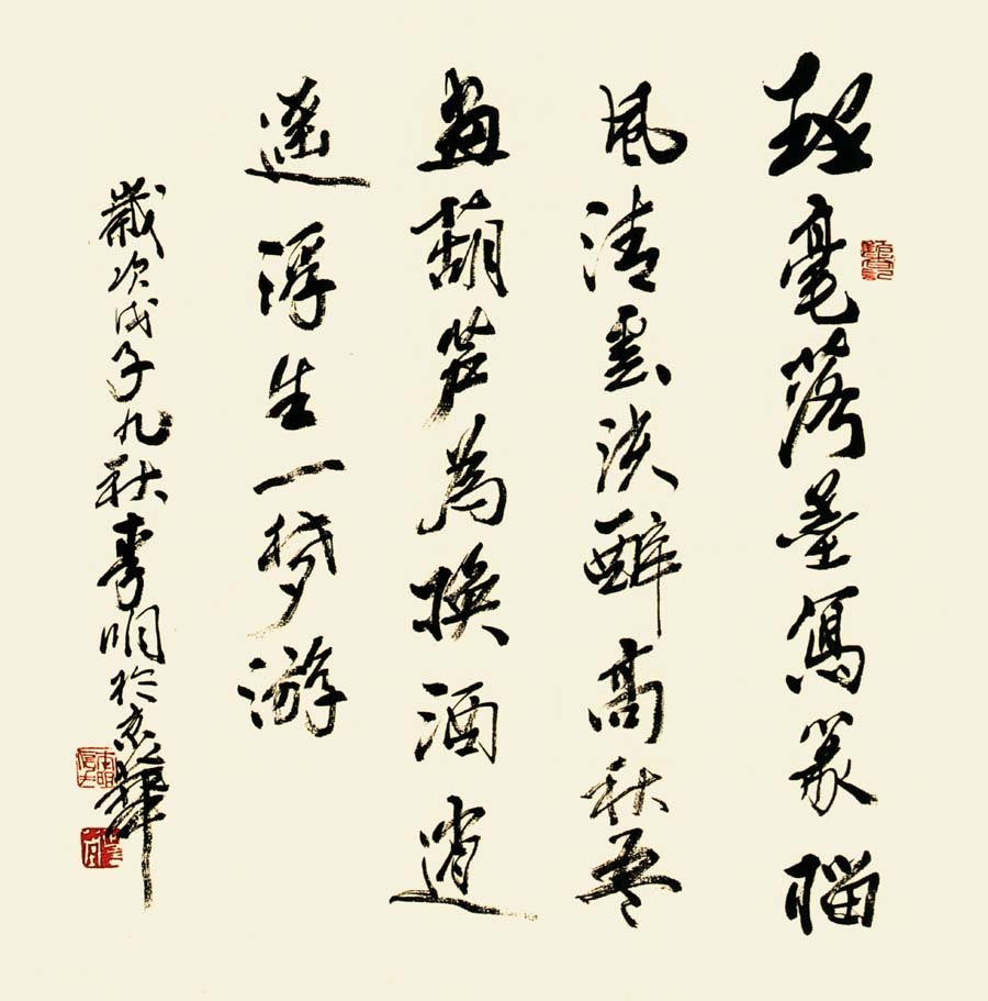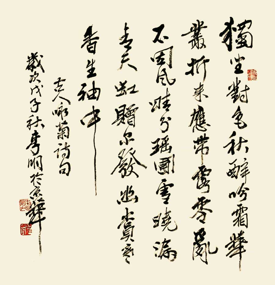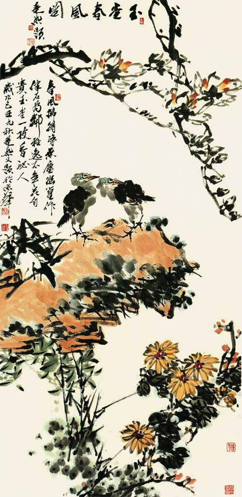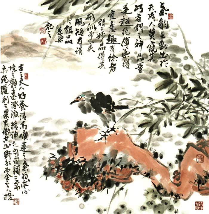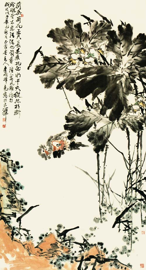 李墨染的大写意花鸟画作品在精神和形式探求的两方面,做出了斐然的成就.因而成为当今大写意花鸟画的杰出代表之一。李墨染的作品坚守传统,关注自然,既讲究用笔的情趣和骨力,又强调墨韵风神。以书入画,蒙养笔墨,以独特的审美视角,展现质朴自然雅拙苍洁之美。以出其不意的构图及饱蘸激情的语言符号,营造闲适恬静,妙趣天然的意境。曾先后于北京广州等地举办个人画展十余次,作品被国内外美术馆,博物馆及国际友人收藏。