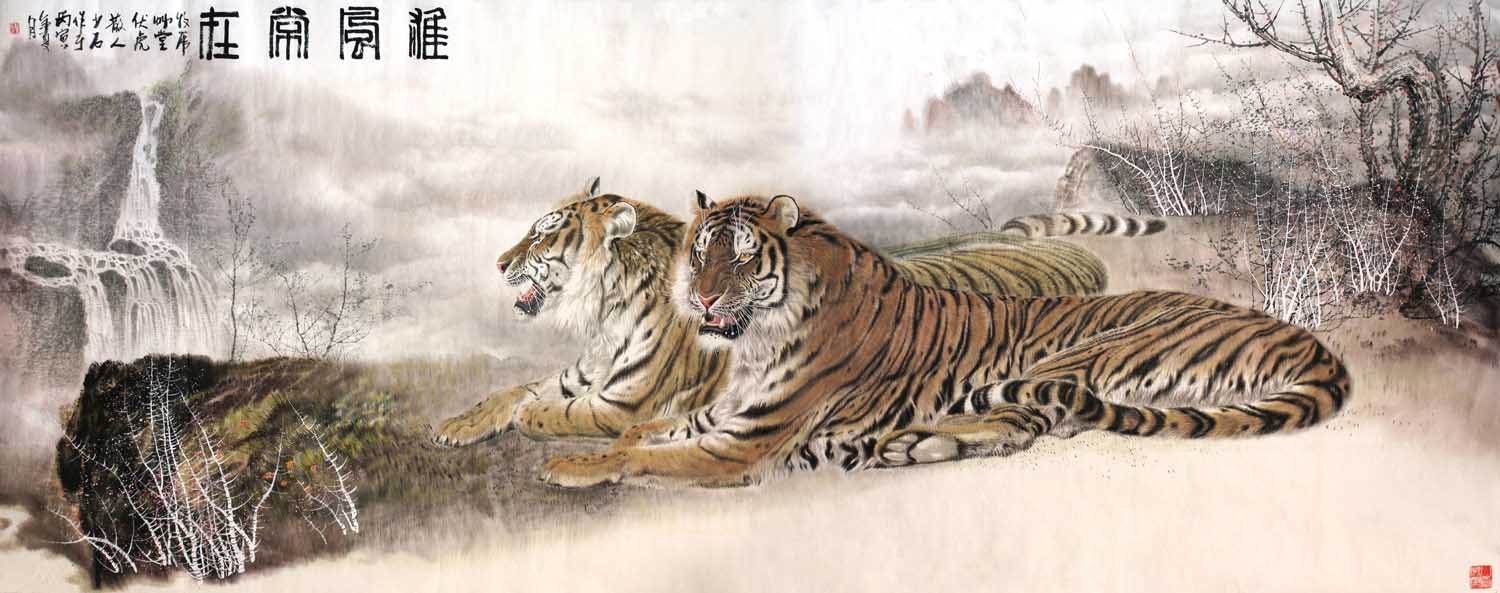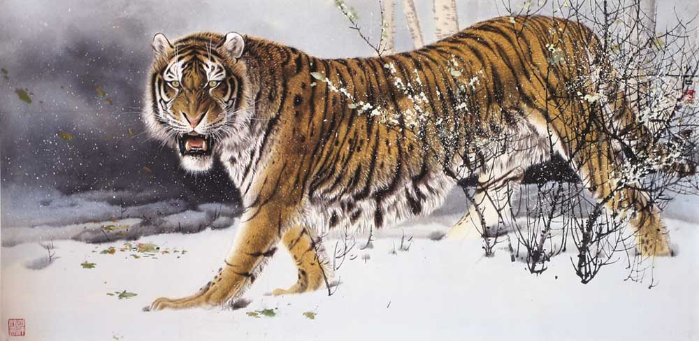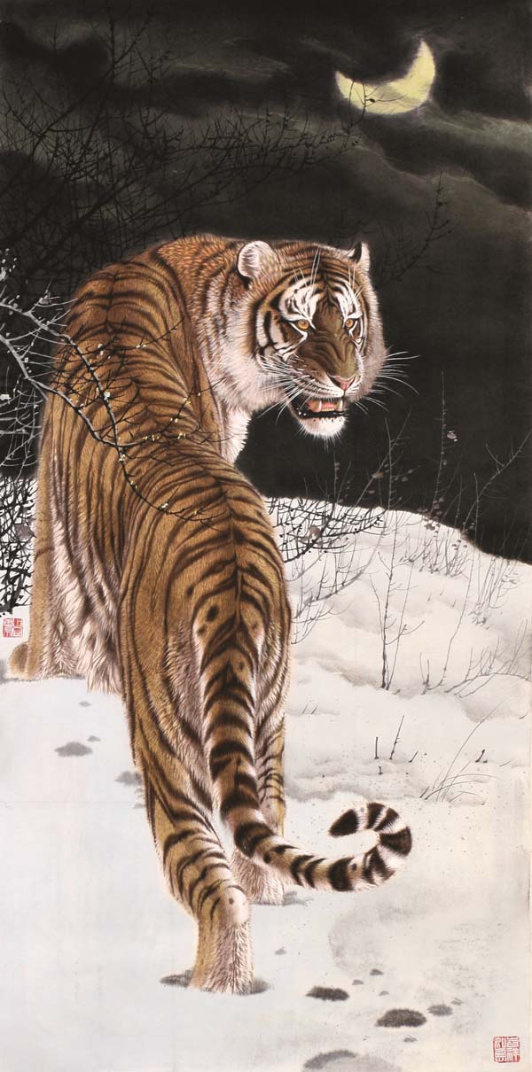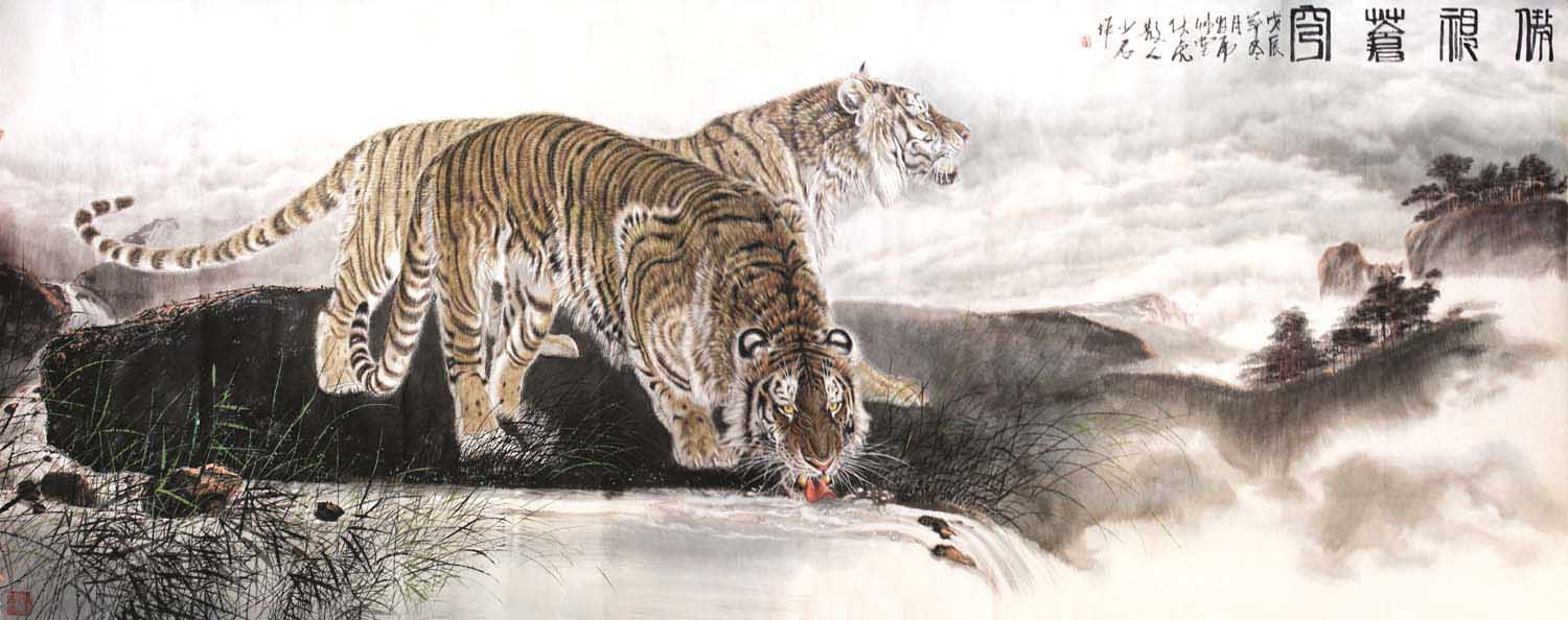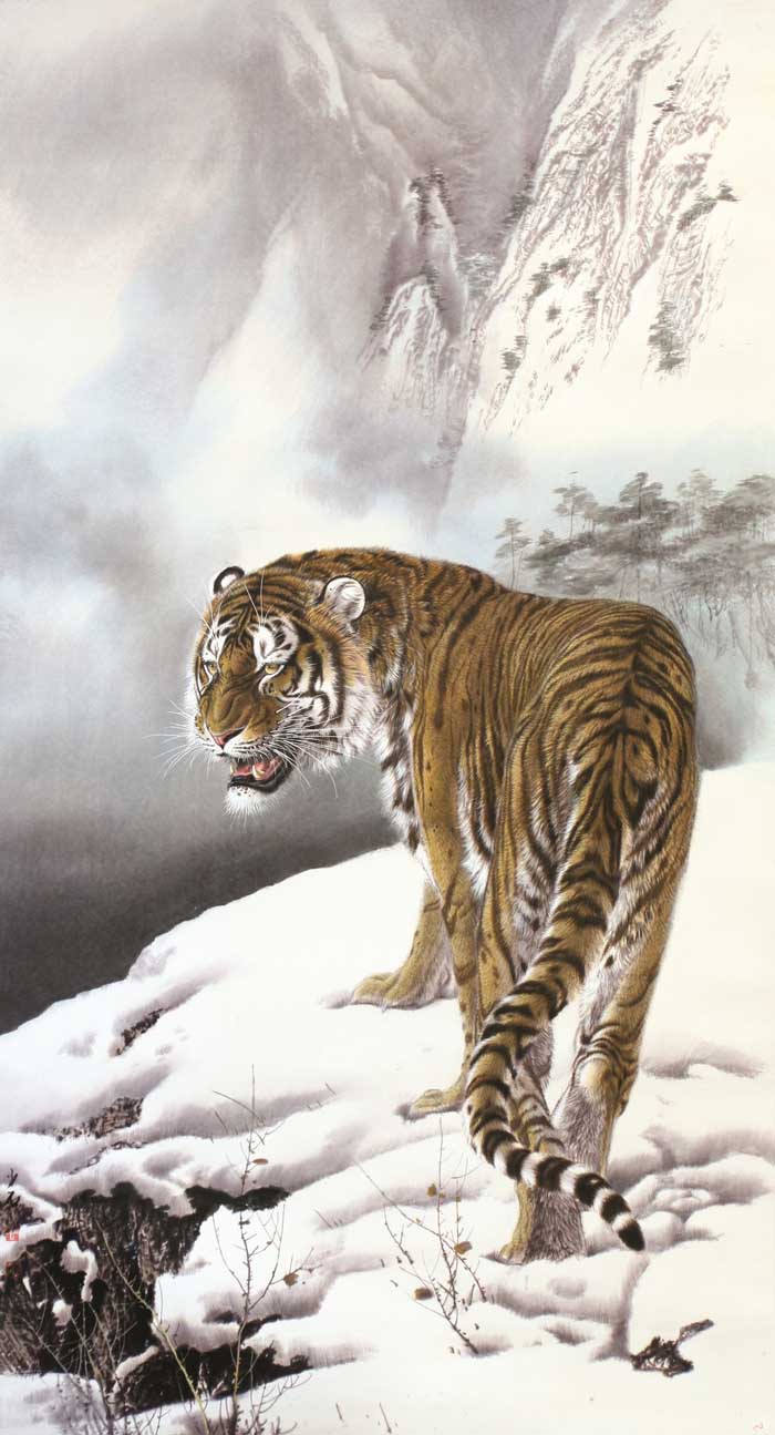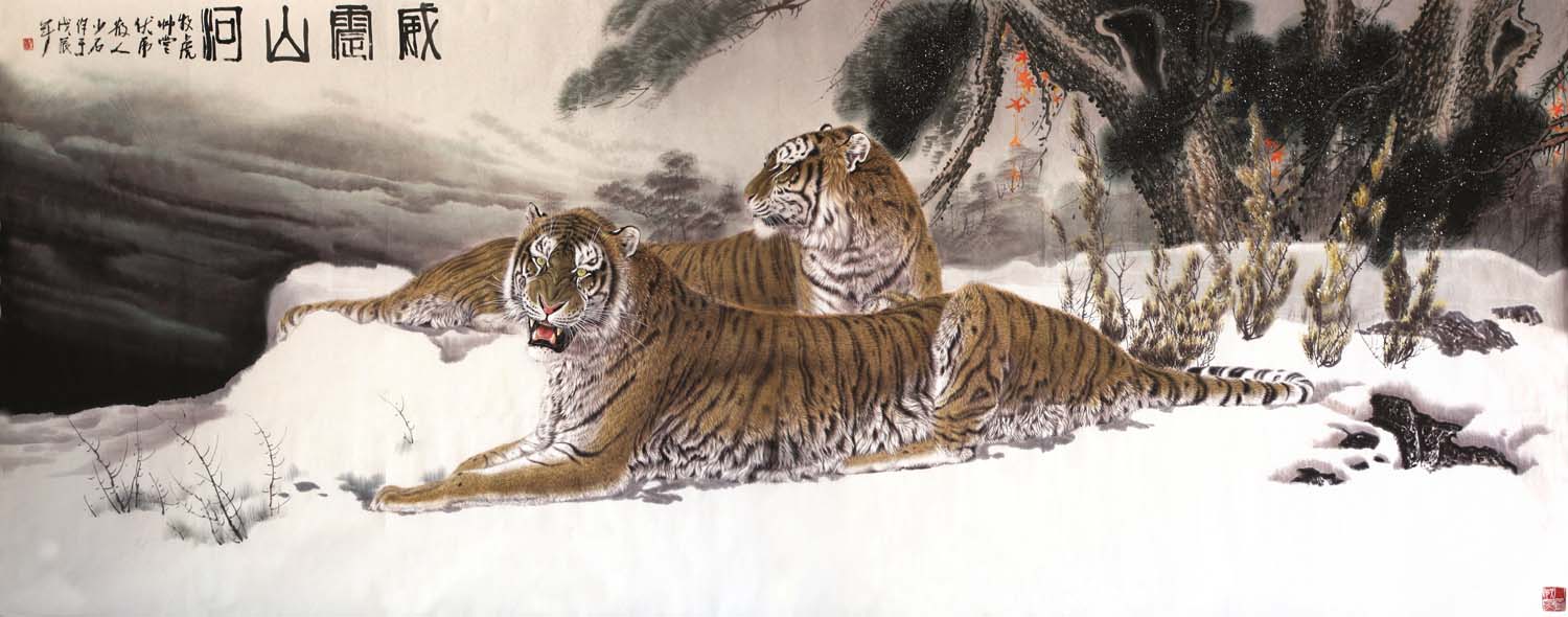 张少石,号牧虎草堂主、伏虎散人,1951年生于河北易县,现居河北廊坊市。现为中国书画研究会理事、一级画师。他自小受家风熏陶与美术结缘,刻苦钻研画技,并临摹大量古今名作。1968年考入北京美术专科学校,1972年拜齐派大师娄师白学习大写意花鸟,而后倾爱于画虎。他笃信禅学,禅宗美学思想对他的创作实践产生了重要影响,他“笔中有禅,墨中有禅,禅在笔先,直指本心”,观其画如置身于清凉佛境。