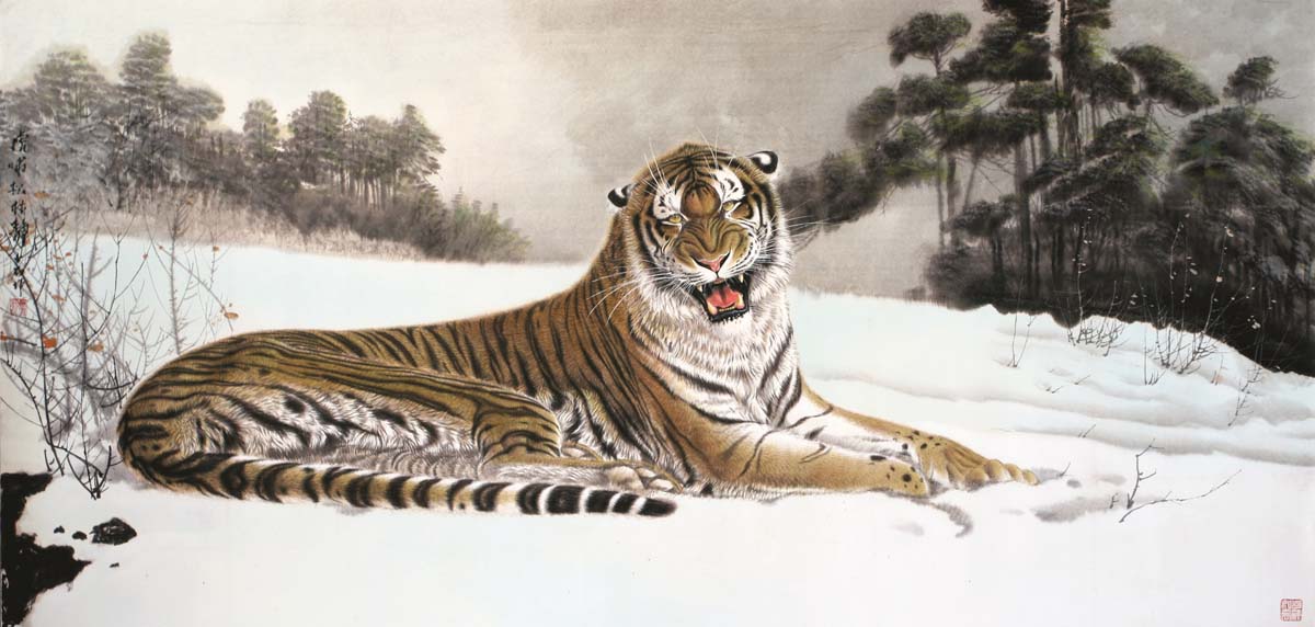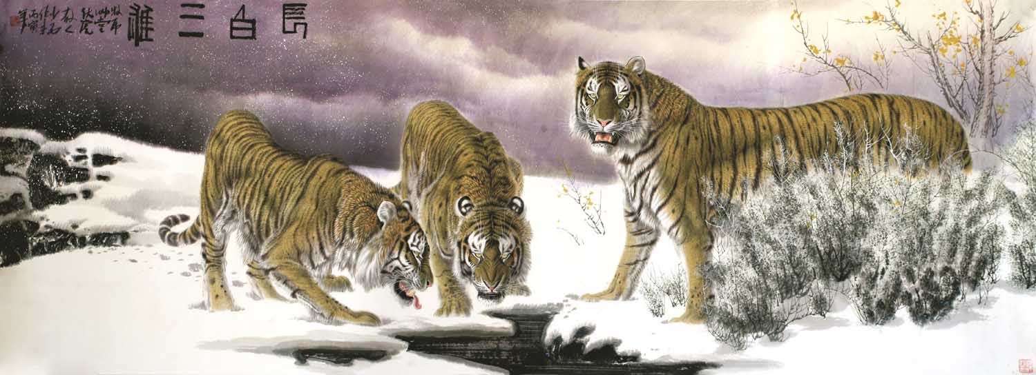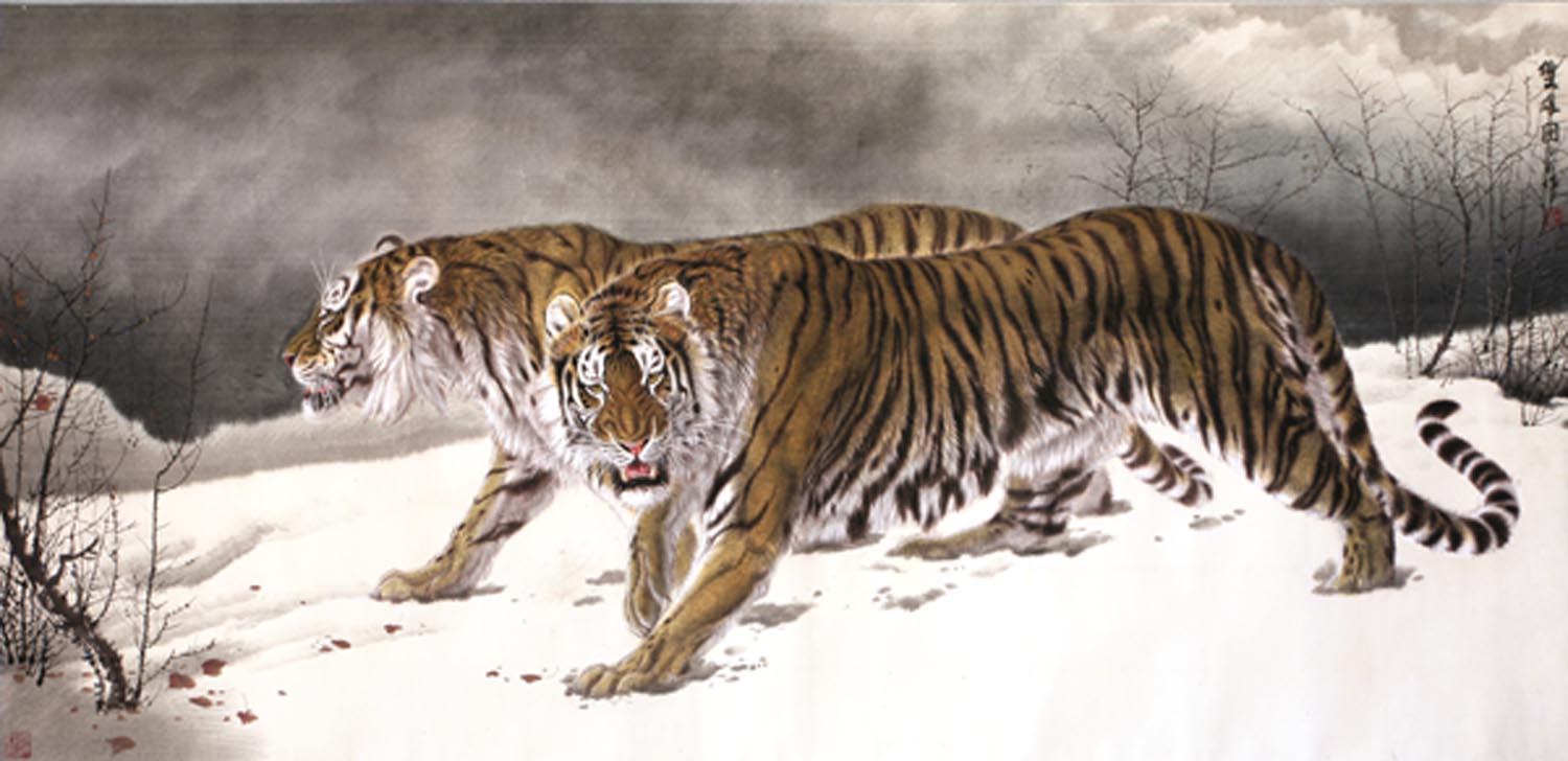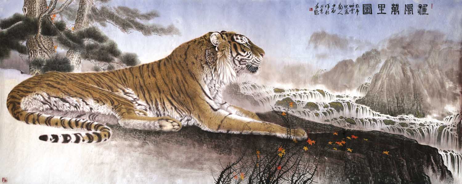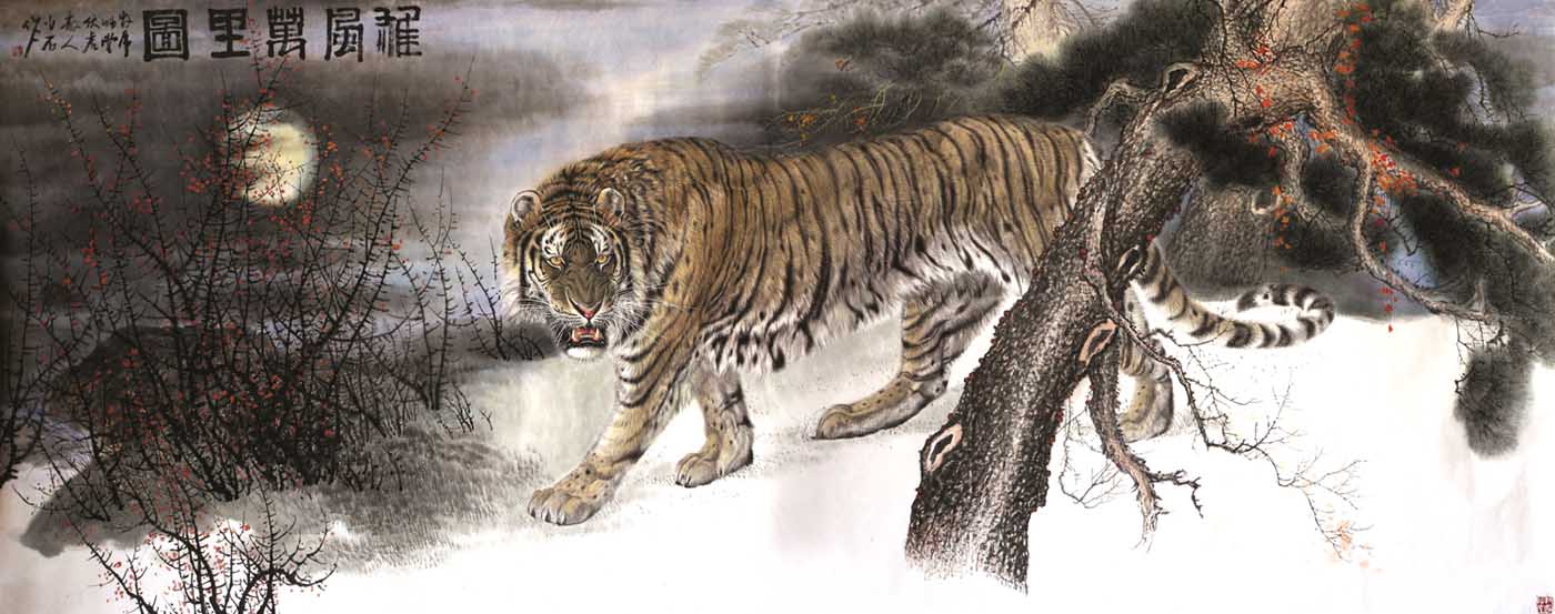 张少石,号牧虎草堂主、伏虎散人,1951年生于河北易县,现居河北廊坊市。现为中国书画研究会理事、一级画师。他自小受家风熏陶与美术结缘,刻苦钻研画技,并临摹大量古今名作。1968年考入北京美术专科学校,1972年拜齐派大师娄师白学习大写意花鸟,而后倾爱于画虎。他笃信禅学,禅宗美学思想对他的创作实践产生了重要影响,他“笔中有禅,墨中有禅,禅在笔先,直指本心”,观其画如置身于清凉佛境。