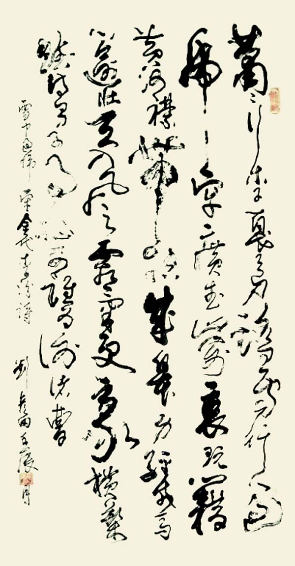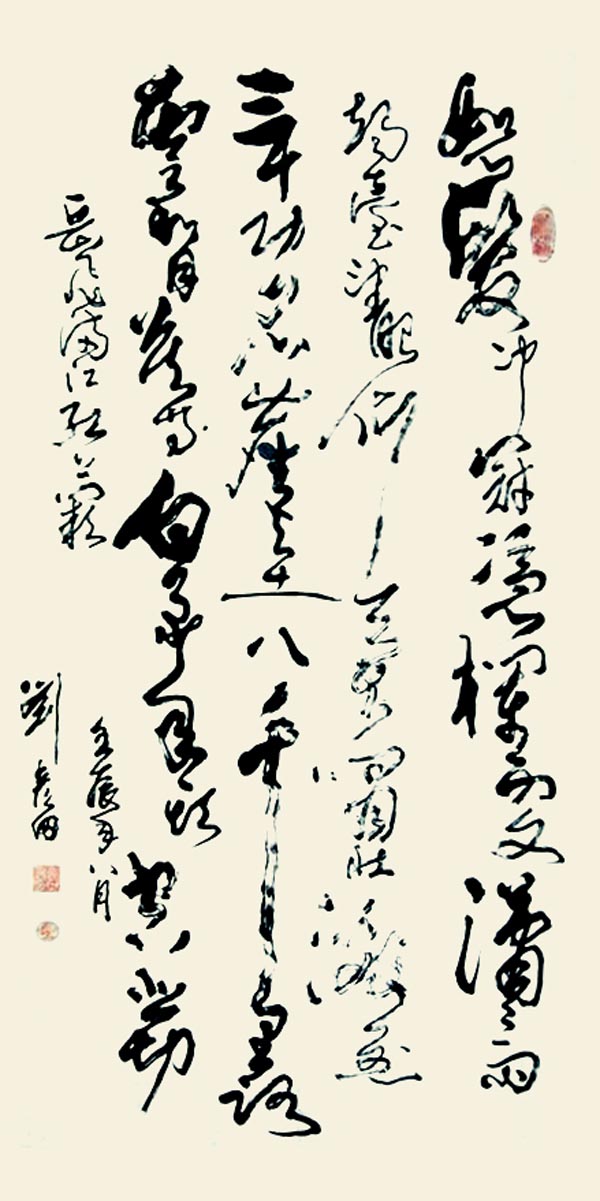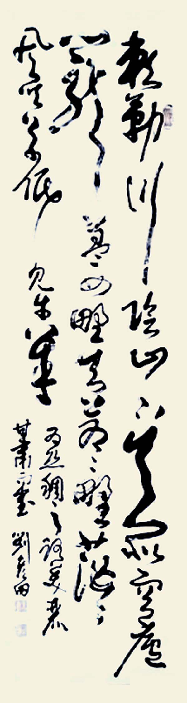 刘彦田,生于1960年,1981年毕业于天水渭南师范。1986年在全国东峰碑林大赛获“佳作奖”并成为会员后,工作之余,一直默默潜心钻研书法艺术,其书师法高古、韵出晋唐、兼擅诸体、融会百家。追古溯源,融通化物,以柳、王、米为基,远接张芝、张旭、怀素、黄庭坚诸家,博采约取而自成气象。新世纪以来,更颇好行、草诸体。在漫长的书法追求岁月里,我不改初衷,无怨无悔地建造自己的艺术大厦、精神大厦,坚实不懈地研习行书、大篆和狂草艺术。这也正是我在大草等领域能取得一定成就的坚实的思想基础与情感基础。代表其书法见解的《狂草窥幽》一书,植根书法演变历史、远接古人书学思想、近融名家书学理论,出乎自身书法实践,承前启后,全面总结了狂草技法。2012年9月获甘肃省人口文化艺术节书法类”优秀奖”,同年加入天水市书法家协会。2013年完成《议狂草意象思维》论文。2014年4有25日被中国书画家职称及润格审定委员会评定为“国家一级美术师(书法)”。