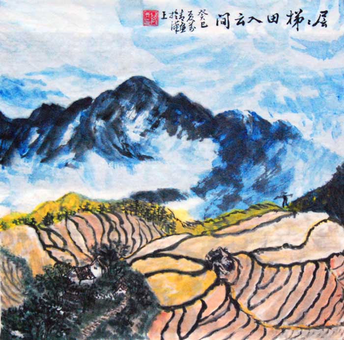 2013年作品<荷塘清趣>。<太行胜景>。在赴法国际交流展中获金奖;