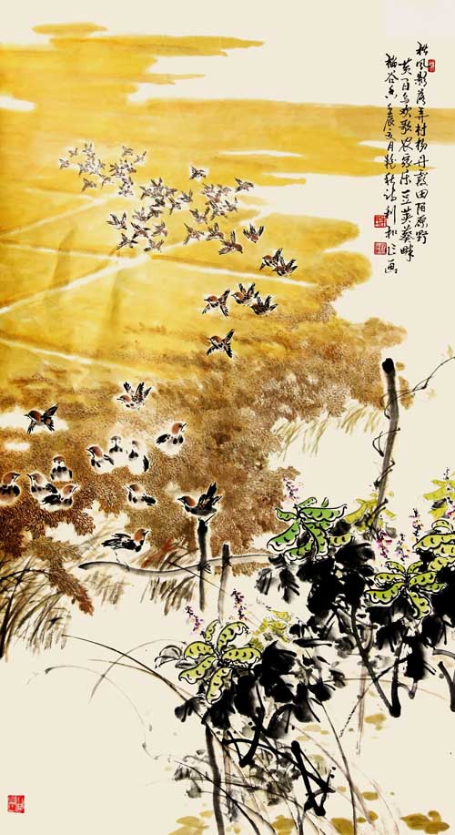 朱利和先生师于名家,博采前贤,诗书画皆见造诣,是沂蒙大地颇受欢迎的艺术大家。其作品既有传统艺术特色,又有时代的创新之美,笔下的花鸟虫鱼都有着鲜活的生命,是物我兼容的大美气象,是画家心灵之主与大自然造化之神恣肆交流冲撞的幸运儿。赏读先生的力作,令人心悦目爽,神思逸畅,情志舒扬,能感受到超越时空的审美号召力。