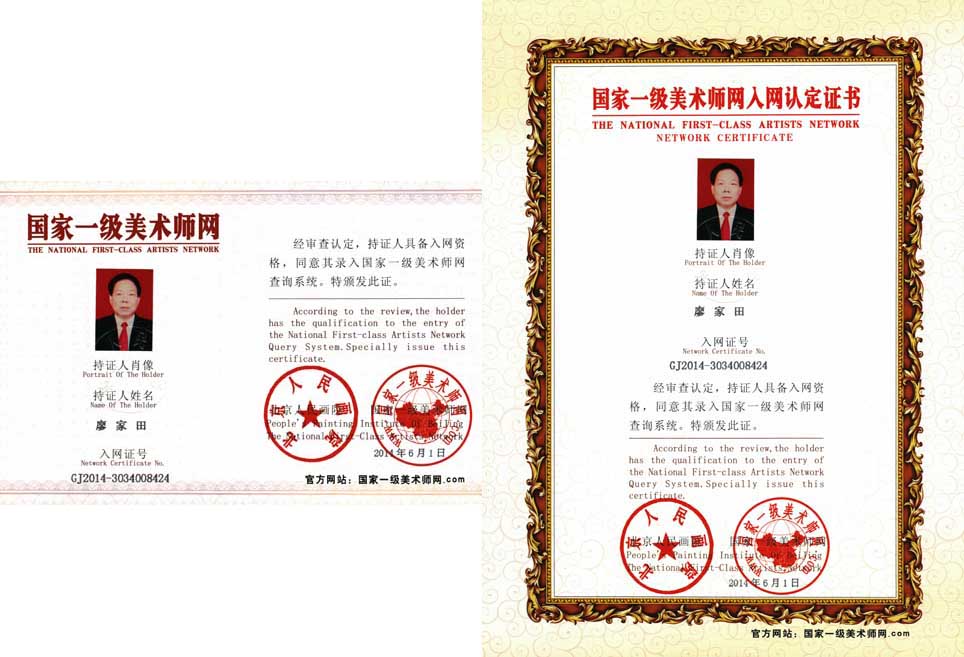 廖家田,男,湖南怀化市人,1944年10月出生,1961年8月入伍,野战军甲种师政委、师党委书记。在军事大比武中获大军区第一名,获“投弹能手”、“神枪手”等称号。多次指挥师团级作战,曾受到胡耀邦总书记宴请和指点,带九个团的加强师重上前线,打出了军威、国威。他淡泊名利,辞去副军级职务,转业任怀化行署副专员。他热爱文学和书法。其作品多次获全国一等奖、金奖和特等奖。其书法作品收集于《中国书法十大名家》、《中国书坛十大风云人物》、《中国书法一代大师》……等10多部典籍中。出版了45万多字的长篇小说《奇兵怪将》一书。获省民族劳模、“中国国粹艺术传承人”、“共和国改革创新人物”、“共和国杰出艺术家”、“2008中华艺术终身成就奖”、“世纪飞龙终身成就最高荣誉奖”、“当代著名艺术家”、“共和国功模人物”、“军旅功模”、世界文艺美学金像奖,最高荣誉“终身成就奖”、“世界美学艺术大师”、“当代中国最具投资艺术家”、“世界杰出人物”……等多种荣誉称号,被聘任中国国家书画院副院长和世界文艺美学联合协会荣誉主席之职。