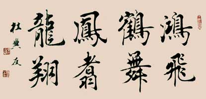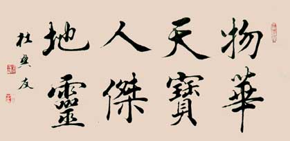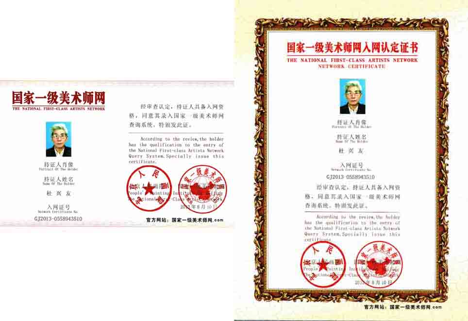 杜兴友(1934—),天津市人。曾多年从事语言文学、编辑和书法教育工作。1994年退休于中国民航学院(今民航大学)。倾情于书法,逾七十载;从事研究、创作和教学近三十年。曾沿着书法史的脉络,根据可以寻到的资料,从商周金文、秦汉石文、直至魏晋以降各代法书,都做过忠于原作的精心临写。并以类成卷,断以成集。临本所积,已足具规模。多年对楷书的结构美作专项研究,并以黄金律格控手段验证并书写了《汉语大字典》所收全部单字。在此基础上撰写了《楷书结构黄金分割示范单字一万例》一书。所出版的《黄金分割醴泉铭临本》和《黄金分割楷书千字文》两种用于指导教学和辅助自学的楷法字帖,在应用中收到了极佳的效果。早年书作曾获“20世纪国际艺术名家教授国际金奖”、“世界美术大奖”、“世界文化艺术交流功勋奖”以及金、银、铜等奖项。作品及传略被收入《世界著名书画家真迹博览大典》、《中国当代书画名家书画大系》、《中国历代书画名家精品集》、《世界美术大典》,以及《中国历代书画名家辞海》、《中国近现代书画名家经典》等数十种专集和辞书。近几年曾分别与沈鹏、欧阳中石、李铎、刘大为、吴冠中、靳尚谊等先生合集出版了《艺术之魂》、《翰墨春秋》、《书法四大家》、《中国当代书法大家》等专集和2010~2013年的书画台历。