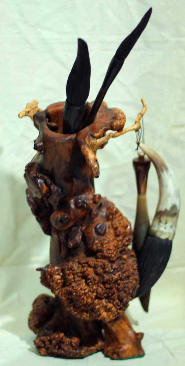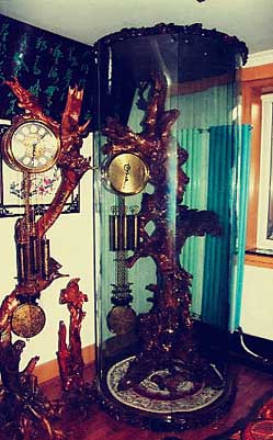 根艺作品:十多年创作近百件作品,其中创作的“根艺钟表”已获国家专利,申请专利号:CN200920011042X,公开公告号:ON201355428。