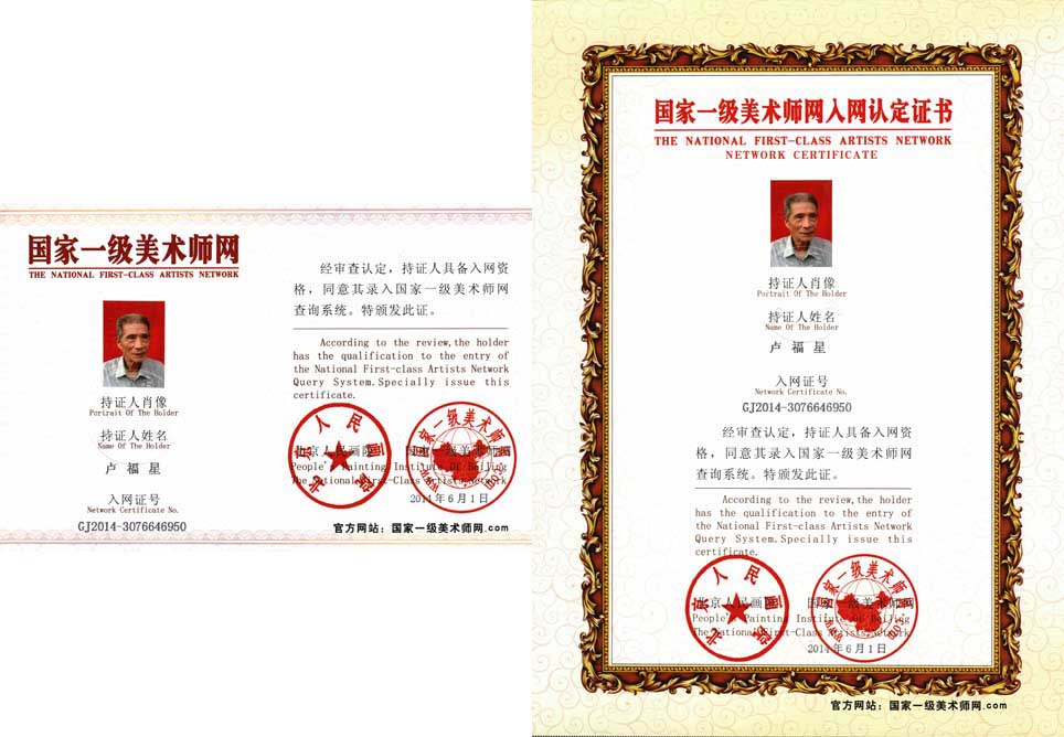 2004年6月,国际羲之书画院、中国书法美术家艺术创作中心、香港书画杂志社联合颁发《中国书法美术家》资格证书,并荣获《中国书画艺术界杰出贡献奖》。