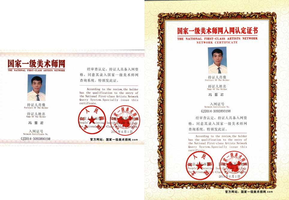 冯慧君,男,1962年生,中共党员,大学文化,从小习书作画,对书画及文学善于钻研。书画作品曾获首届全国硬笔书法大赛优秀奖,毛泽东诗词中国书画大赛铜奖;首届“精忠杯”全国书画剪纸大赛金奖;“唐诗、宋词、元曲”全国书画大赛特等奖;“和谐杯”全国诗书画摄影作品大展赛书法中青年组一等奖;海南省国防教育书画比赛绘画二等奖;纪念辛亥革命一百周年全球华人书画邀请展书法金奖。