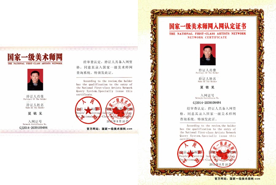 夏铭见(夏杰忠),重庆合川人,六十七岁,现定居四川崇州,现为四川省老年书画研究会会员;崇州市美术家协会会员;中国国际现代艺术研究中心高级研究员,并授予“当代艺术名家”荣誉称号,中国书画艺术院终身院士,国家一级美术师。自幼酷爱书画,曾授教于国画大师周北溪,现以画猴专长,其作品惟妙惟俏,形神兼备,并享有金猴妙手之称。2008年作品入编《中国奥运书画大典》。2010年作品入编《世界艺术家中国专号》2011年作品入编《中国传世名作收藏与鉴赏》。2013年海峡两岸文化交流展作品获金奖,并被台湾行政院收藏。2010作品同住此心中,五代封侯,相继在青岛、北京翰海都已成功拍出。其作品深受业内人士赞许并被广泛收藏。