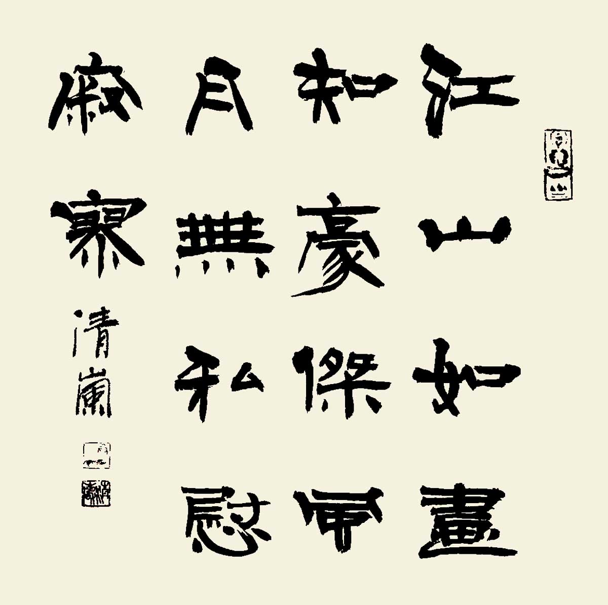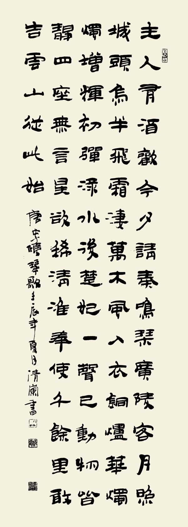 卞清岚,号山风,斋号槿吾草堂,静心莲花院。1959年生。中国书法家协会上海考级中心常务副主任,中国书法家协会(上海)注册教师教学研究会会长,书法报社上海工作站站长、书法报社上海书法报创作中心主任、黄浦画院书画师,交通大学客座教授,中国艺术研究院研究员。著有《卞清岚书法篆刻集》,编著《跟我学汉简》,《隶书入门》,《三步练字法》,论文《石门颂临池管见》。参加1990年兰亭笔会,评为三等奖。《砖刻与碑刻》参加1991年《写字杂志》论文比赛,评为二等奖。作品多次参加国内外重大书法展,并发表在多种报刊上。早在上世纪80年代,《新民晚报》副刊“十日谈”就有过专人介绍。东方电视台“纪实”栏目曾作专文评介。作品及简历被收入《中国书法家作品集》、《当代篆刻名人录》、《新中国书画60年作品集》、《上海书画名人录》、《中国古今隶书十家》、《中国隶书选集》等。