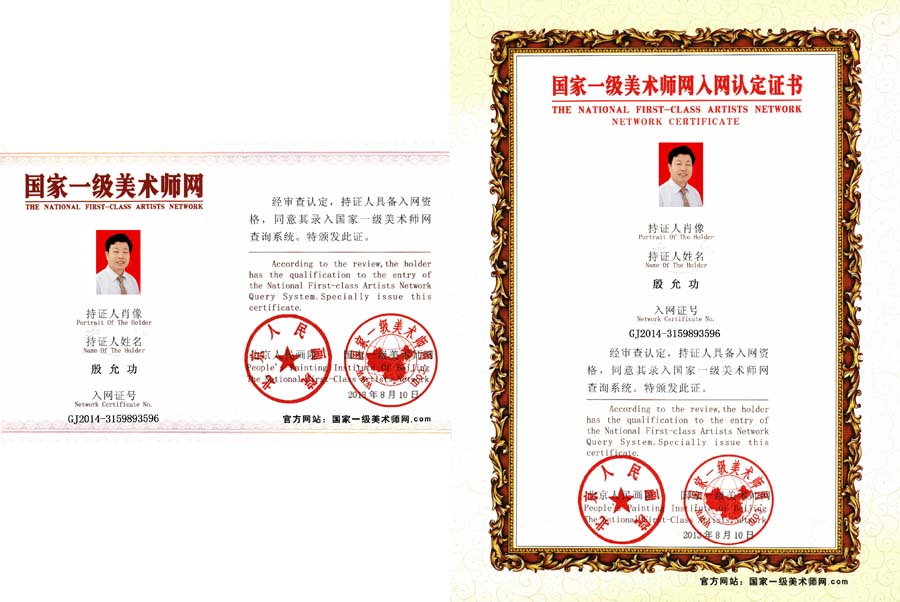 殷允功,山东微山人,我国著名大写意花鸟画家、中国美术家协会创作中心创作委员、中国国画家协会理事、中国书画艺术院驻院副院长、中国国家书画院副院长、山东省美术家协会会员、全国中小学师生书画作品大赛评委、’98全国百杰书画家、“2005、2009全国百名作品最具收藏和升值潜能画家”等,国家一级美术师。