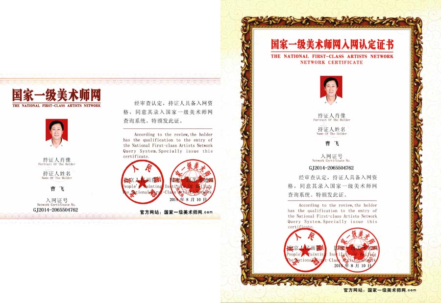 曹先生潜心于书画艺术研究与创作30多个春秋,在中国西部及省内外多次举办个人书画展,在参加中书协举办的第九届书法高研班学习期间,受林岫、钟明善、张改琴言传身教。厥书法作品在人民大会堂展出后,授李敏签署荣誉证书并收藏。其山水、花鸟画被全国诸多权威刊物结集出版,他的作品贴近生活,底蕴深厚,成为国内外颇有影响的著名书画家。