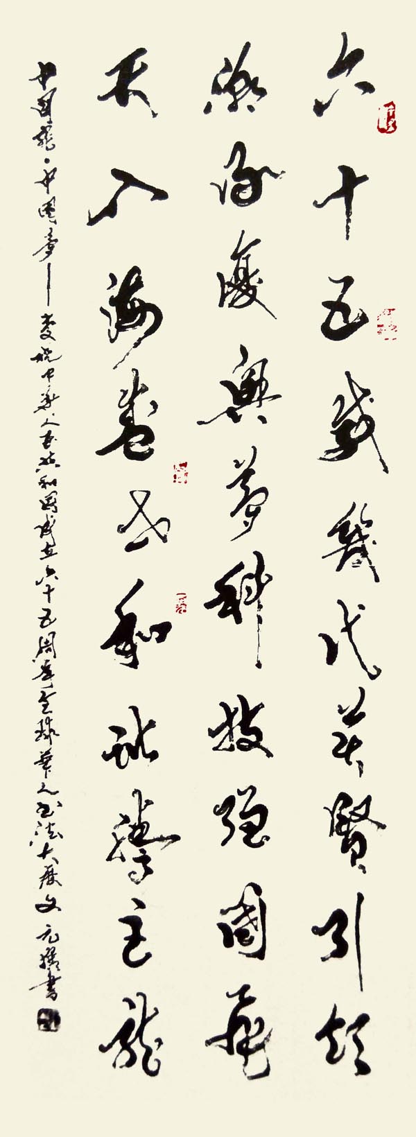 在全国重大书画展赛中,我撰书切合时宜的数十幅诗词、书法、歌曲等作品受到有关评委好评,并获得主要奖项:金奖、银奖、铜奖、特等奖和终身成就奖等,而被入编入刊或收藏。如首届少林功夫杯中国书画名家邀请展、首届炎帝魂中国书画作品大展、首届“扬州八怪杯”全国书画大展、为了二十一世纪——环保全国书画邀请展、当代中国名人名家书画展、“情系西部”2003年中国书法家作品邀请展、长城杯全国书画展、万世师表全国书画展、纪念渡江战役胜利60周年全国书画大展、奥运之歌全国诗词书画大展、国庆60周年全国书画大展、日出韶山中国书画名家作品展、和平颂•钓鱼岛抒怀全国书画大展、中国艺术飞天奖邀请展、全国莲花颂书画大展、永远的怀念•元勋颂全球华人书法名家作品大展、中国龙•中国梦庆祝中华人民共和国成立65周年全球华人书法大展、感恩小平纪念小平诞辰110周年全球书画名家作品大展等以及自撰词曲的《献给母校的爱》《祖国好》《幸福根基环境美》《中华胜地溱湖美》等歌曲。被授予“当代中国艺术名家”“世界华人文艺先锋人物”“爱国艺术家”和“中国艺术飞天奖杰出贡献人物”等荣誉称号。
