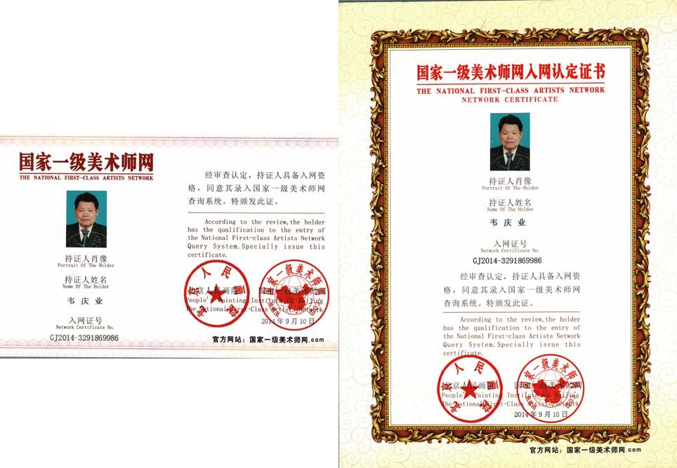 韦庆业,男,1942年10月生,广西柳州市柳城县人,大学毕业,壮族,工程师,现为中原书画研究院客座教授,新加坡共和国特聘高级书画师,内蒙古青年书画院院士、杰出艺术家,国家一级书画家,国家一级美术大师,中国艺协第三届副主席,世界艺术家协会理事等。