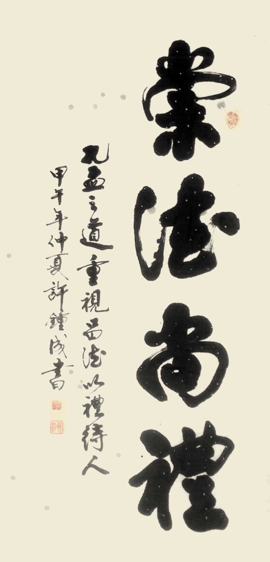 许钟成,汉族,男,1935年1月出生,中师文化。1951年参加革命,当小学教师。在工作期间,经常为社会及单位书写标语会标,文革期间带领8个教师专职到8个乡镇书写毛主席语录,特别是在余家镇流水岩书写毛主席万岁五个大字,每个字的面积为1亩(约700平方米),费工200多个,用去干石灰3吨,70年代被评为县级先进教师。