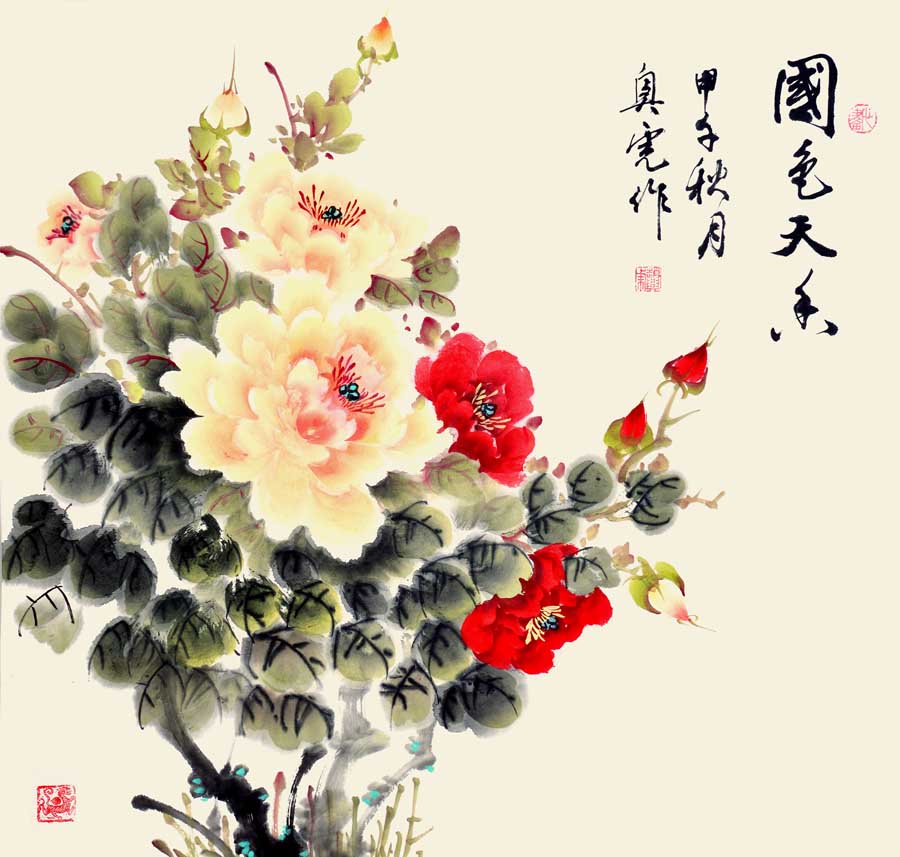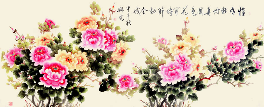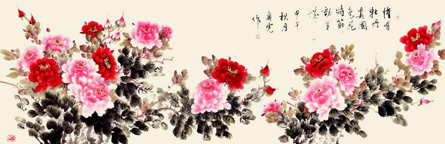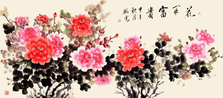70年代,经过数十年的夏练三伏、冬练三九、起早到晚、不间断地努力,终于画出了春、夏、秋、冬牡丹五百余幅。他所画的牡丹朴实中带着坚韧,娇艳中含有富贵。早在80年代他的牡丹在河湟地区享有盛名,他所取百家之长,补自己所短,创作出自家独特风格的画。他的牡丹明朗、鲜丽,并把古典的写实手法和中国传统的写意画中所求虚灵美的神气结合起来,从而以朴实宁静之美,成其作品的独特风格。这是他的画有别于其他画家的地方,他画的牡丹意在抒以对劳动者辛勤的赞美,从劳动生活中发现的东西并真挚地传播给欣赏者。