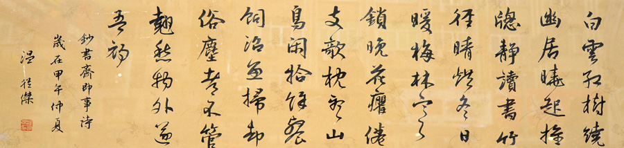 温从杰,字子雄,别署夜读斋主。出生于1950年7月。现为浙江省书法家协会会员,美国四海诗社基本社友、中华诗词学会会员,中国楹联学会会员,浙江省诗词与楹联学会会员、温州诗词楹联学会理事,苍南县诗词学会副会长兼秘书长。