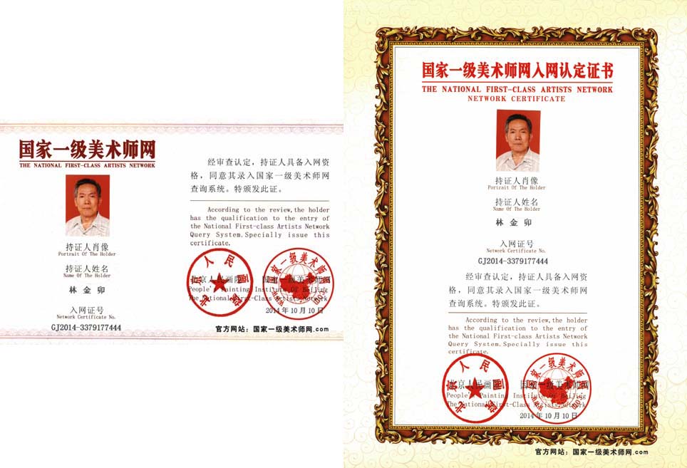 林金卯,男,1943年11月生,福建莆田人。曾参加国家书画院、延安文学艺术研究院及新华网、人物网等多家会网活动。曾荣获“中国文学艺术研究会国家艺术奖金奖”、“中国艺术人物网兰亭工艺美术终身成就奖”、“中国国学研究会 孔子金像艺术奖”金奖等奖项。