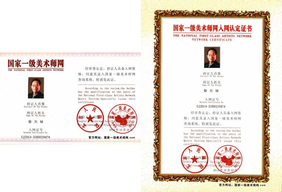 徐光禄,字古轩,号宵琢,笔名醉石山人。生于1946年,甘肃省平凉市庄浪县人,大专,国家干部,原政协委员、人大代表,国家一级美术师。现任中国国家书画院副院长、中国书法美术家协会副主席、中国文化艺术协会名誉会长、中国国学大学专家委员会特邀研究员、中国民族文化研究会名誉主席、中国书画名家研究会名誉主席、中国诗联书画研究院副院长、中国数字艺术馆馆长、香港特别行政区书画社名誉社长、世界教科文卫组织艺术委员会执行委员、世界华人文化名人协会副会长等职。