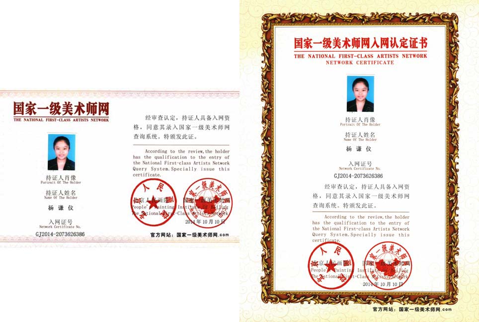 杨谦仪,女,2001年5月11日出生,小学一年级开始学习画画,学习油画一年,一直在昌伟教育学习,在刚开始学习素描,感觉很好玩,几只铅笔可以随意在画面涂涂画画,但在真正接触到后,才明白,一支普通的铅笔就可以画出各种的花鸟鱼虫,在平面的纸张上凸显出立体的东西来,和以往的儿童画相比,我才知道画画不仅仅是可以抒发心中所想的,它同时也能提高个人的综合素质和内在修养,我目前还在就读小学,随着学习的深入,以后也将会遇到更多更大的困难,“办法总比困难多”,这是我常常听到吴老师提起的一句话,我也相信,任何的成功都在于坚持!我很喜欢画画,画画让我更加了解了艺术,锻炼我的智商、毅力、耐力,花花可以陶冶情操和修身养性。2013年,被北京人民画院吸纳为院士。