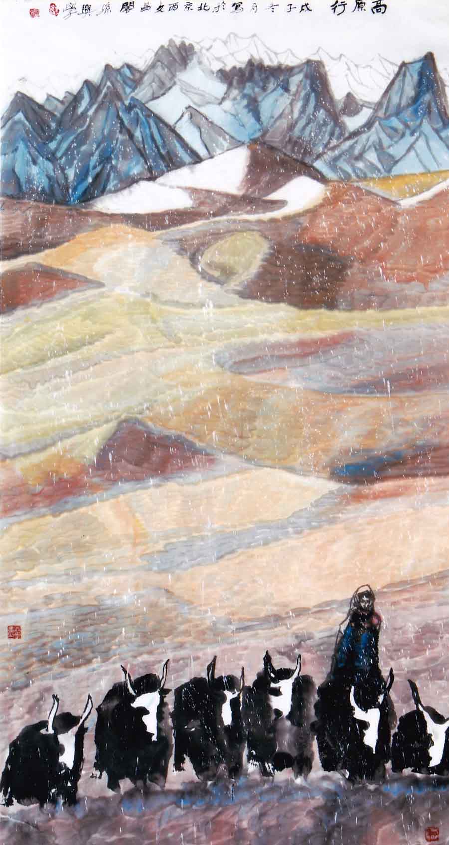 2005年 国画,《金秋》、《天山南北好牧场》入选《西部风韵画展》获优秀奖,并被收藏。国画“保卫黄河”被列为“特别名家”示范展出,荣获特别贡献奖,被组委会收藏,并特授予“献爱心优秀人民艺术家”荣誉称号。