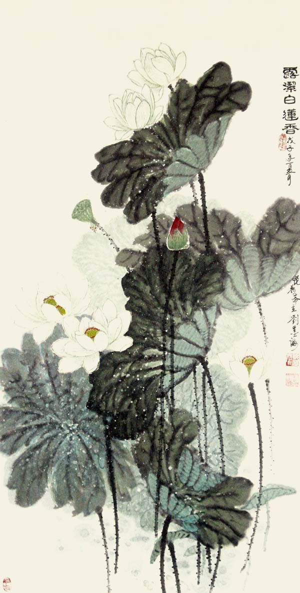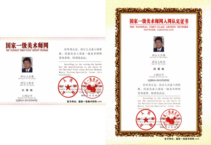刘墨海,荷系列肌理画创始人,原名刘金海 ,与新中国同龄。自幼酷爱绘画,主攻画荷,兼攻梅花等花卉,号称“荷痴”。尤爱表现春夏秋冬,风雨露晴之全貌荷,近年更成功创用了用生宣做肌理画荷之法。1995年由河北省美术家协会主办了个人画展。作品多次在国家文化部、中国文联、美协等举办的美展大赛中展出并获奖,先后被国家博物馆等文化单位收藏,多次在国家、省及市专业报刊上发表。【中国书画报】、【美术报】、【美术向导】、多家电视台和全国数家网站做过专题报导。作品及传略入编【世界美术家(华人卷)】【中国百杰画家大典】【中国美术全集】【中国花鸟名家】等辞书。2003年出版个人画集【刘墨海国画艺术】。现为中国书画艺术研究会副会长,中国国家书画院副院长、国家一级美术师,中国美术家协会会(ICAA)会员,中国国画家协会理事,河北省美术协会会员,邯郸市美协理事。中国冀南书画院院长,中国现代书画名誉院长等职务。2006年被评为中国百位杰出画家。2010年在中华人民共和国文化部举办的“中国文化艺术政府奖”评选活动中荣获“最佳成就奖”。2014年被国家文联评为“国家艺术金奖”,并被授予国家艺术大师称号。