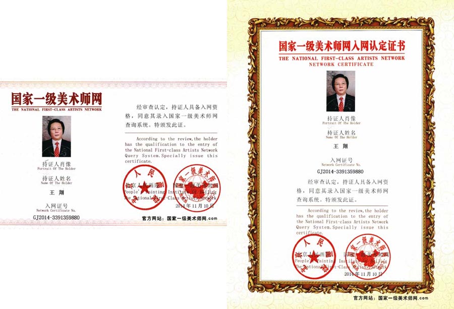 作品“泼墨群鸡图”1996年由北京外文出版社出版,当代中国名家书画宝签。“鹤族塘趣图“1984年由天津人民美术出版社出版,全国中青年花鸟画家作品选。“松鹤延年”1987年被选入江苏科技出版社出版通用百年历封面。“富贵长寿图”参加北京1994年中国艺术博览会,荣获一等奖。1991年南京出版社出版王翔花鸟画集。1996年江苏美术出版社出版王翔画集。2000年编入世界艺术家名人录。2012年作品“绝境苍鹰图”被中国书画艺术出版社出版“一代大师”选入封面、封底。“鹭戏残荷图”被中国文化出版社出版“当代书画名家”选入封面封底。现为南京市美术家协会、江苏省美术家协会会员、中国美术家协会会员、南唐画院副院长、中国书画研究会副会长、中国国家书画院副院长。