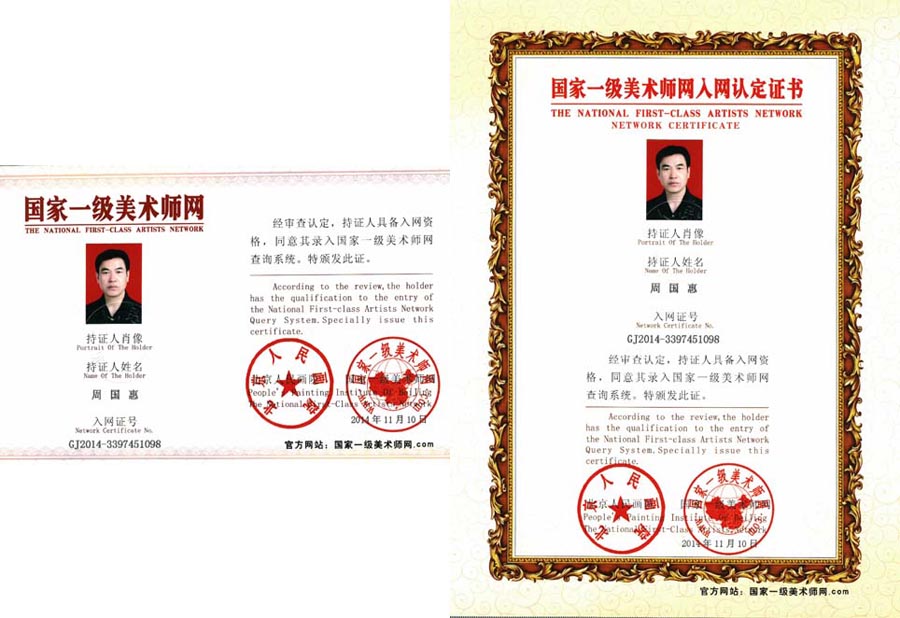 周国惠,男,1945年5月11日生,福建古田县人,现为中国书画家协会理事,南京长江书画家协会名誉主席,长沙羲之国际艺术中心客座教授。