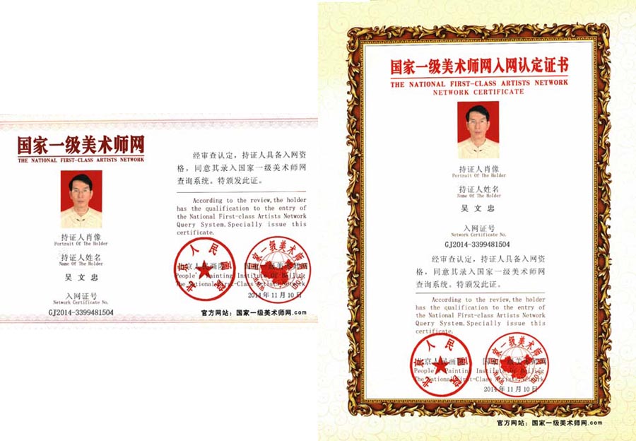 吴文忠,男,1962年出生,福建仙游,号称貂峰居士!“静远斋”主,自幼爱好书画,童年时在油灯下绘画了各种人物、山水、花鸟等作品,贴满家里墙上,让四邻观赏,在校时还常画报刊宣传画等活动。尤其出生在国画之乡仙游,深受国画大师李霞、李耕先生的艺术熏陶。1982年开始从事陶瓷绘画工艺生涯,精心研究陶瓷绘画技法。悉心揣摩、心领神会。博采众长,获得了理论和实践双丰收,所绘的陶瓷艺术产品,远销海内外,受到陶瓷爱好者的赞赏和收藏,1992年进入浙江美术学院进修(国画研究)毕业。作品多次参加各种文化活动画展览,均得到人们好评,并获奖。