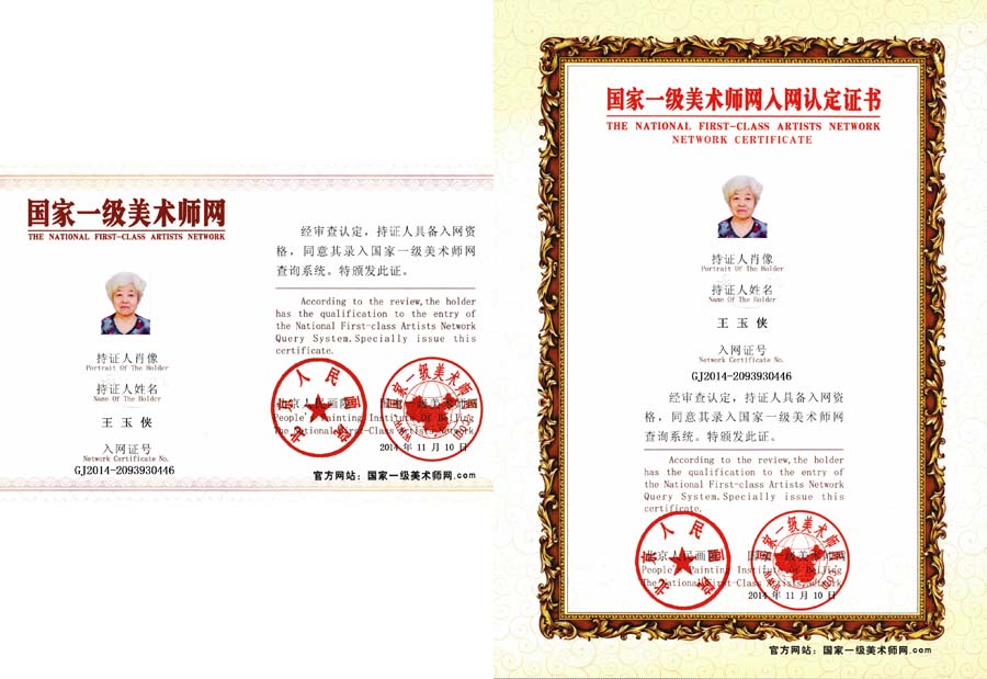 王玉(侠)霞师承父教,历游祖国名山大川,四处拜师学艺博采众长,先后3次进入艺术院深造,1984到1987年进入沈阳美术学校拜著名画鹰大师张英郁为师。1990年到1993年进入厦门大学习画写意画。1996年进入山西大学拜著名画牡丹花老师史秉有习画牡丹。将西方的绘画技艺融为一体,为她创作中国传统工笔画打下良好的基础,绘画及书法自成一家的艺术风格,彰显出中国传统工笔绘画芝术和现代工笔画绘画艺术特有的隽永含蓄之美,她独创大型长卷绘工笔画作品如(孔子生平图、孔子七十二贤图5卷共长75米)(狼山围猎图各长4米)、(和谐花鸟素牡丹图1.4米×6.2米长)及花鸟图、百鹰图、百鸟朝凤图、素墨牡丹图、残荷图等等,作品神似逼真,有当代工笔画“牡丹画王”之美誉。2008年在北京徐悲鸿纪念馆举办个人画展,作品令观者赞叹不已,震撼画坛。其作品多次入选国家、国际重要展览并获金、银奖,工笔画“素黑牡丹图”在国庆45周年北京国际画展上荣获国际金奖及在1995年第四届妇女联合大会画展唯一入选作品,代表中国巡回二十三个国家展出,得到国际上的高度赞扬。受到原全国人大副委员长、全国妇联主席陈慕华亲自接见及授予“中华巧女”光荣称号及颁发证书,作品得到北京大学著名美学家杨辛教授、美术理论家李一先生、徐悲鸿夫人廖静文女士、中国美术家协会主席刘大为先生、中国工笔花鸟画大师、恩师喻继高先生等指点与赞誉。