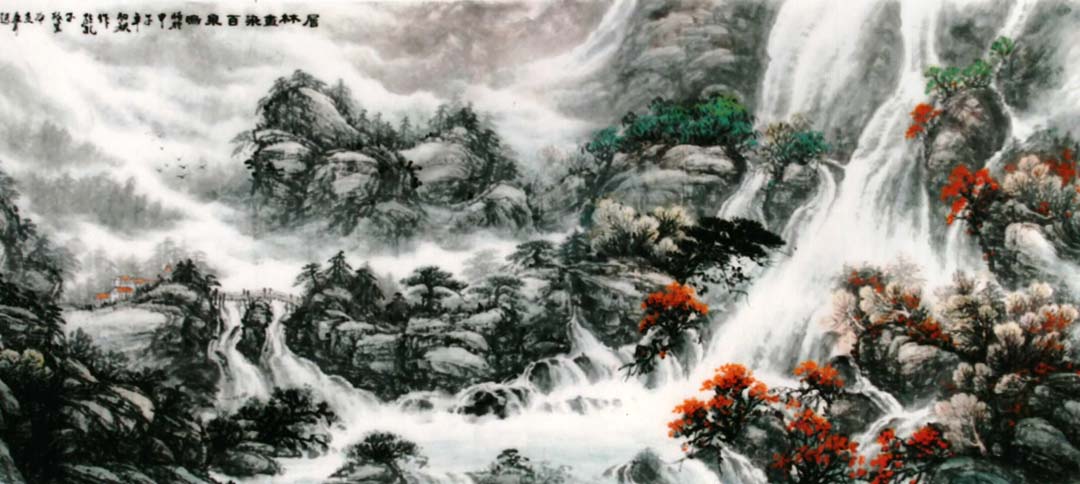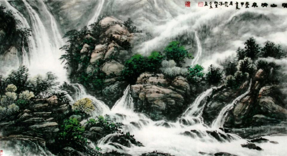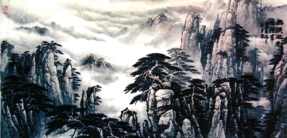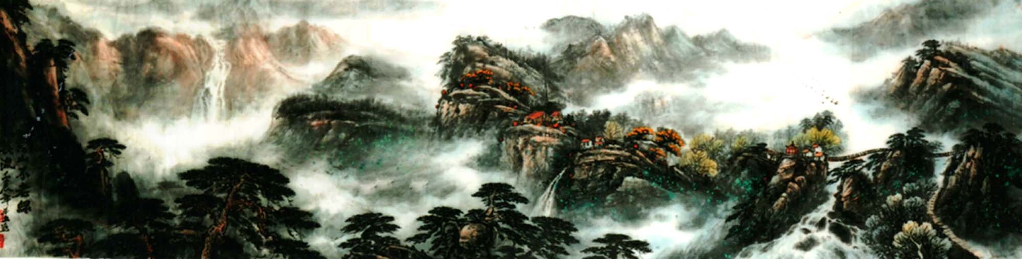 画技上潜心西方风景艺术兼专攻中国山水画艺术。作品擅长中西合璧的画面明暗对比强烈,空间开阔,常以云雾升腾,横流,山势大气磅礴,天水为一体,水云流动时有动感,画面的取势雄奇险峻,给人一种生命不息破浪向前奋进视角冲击力。用笔流畅自如,不受某派某法的所辖制,画面有传统技法的苍润严谨,又有西画透视立体质感和新意,又有大自然的神韵。画面浑厚,气势恢宏,融中西法为一体,给人一种明快感染力和无限的遐想。