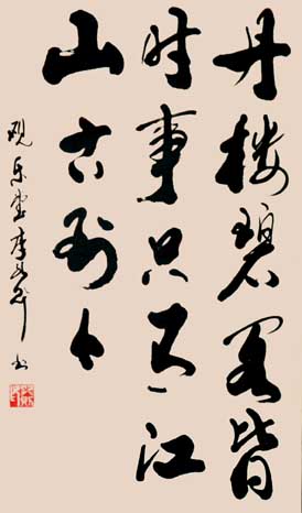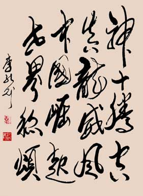 从艺理念是:谨守学识和修养;书艺功在不舍;神笔妙自有悟。