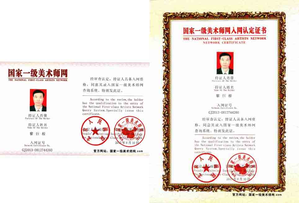 黎巨根,男,1955年6月生于广州市,汉族,大学本科毕业,中国当代艺术名家。现任世界华人美术学会副主席,英国皇家艺术院荣誉院士、客座教授;国际奥林匹克书画家联合会常任理事,香港特别行政区书画社名誉社长,中国国家书画院荣誉院长,客座教授;国家一级美术师;中国国际艺术网执行副主席,中国艺术家交流协会主席团常务副主席兼秘书长,中国诗书画出版社社长,中国民族艺术家协会终身名誉主席,中国当代艺术家协会终身名誉主席,中国科学技术协会教育专家委员会首席专家。中国宋庄国际书画院终身院长,中国艺术名家研究院荣誉院长。中国书画名家研究会专职副会长,中国民族艺术家协会副会长。淮海书画院名誉院长,福建东方书画艺术院名誉副院长、客座教授,新世纪书画研究院副院长;特级书画家;世界硬笔书法家协会高级书画家。