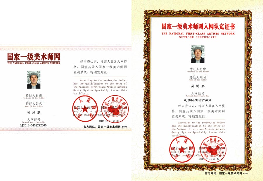 吴鸿鹏,男,辽宁省冰雪画艺术研究会执行会长,于志学工作室助理。1949年出生于辽宁省海城市。毕业于中国山水画研修院,导师王中年。结业于中国人民大学中国画书法硕士研究生班于志学工作室,导师于志学,李宝林,苗重安,王超。