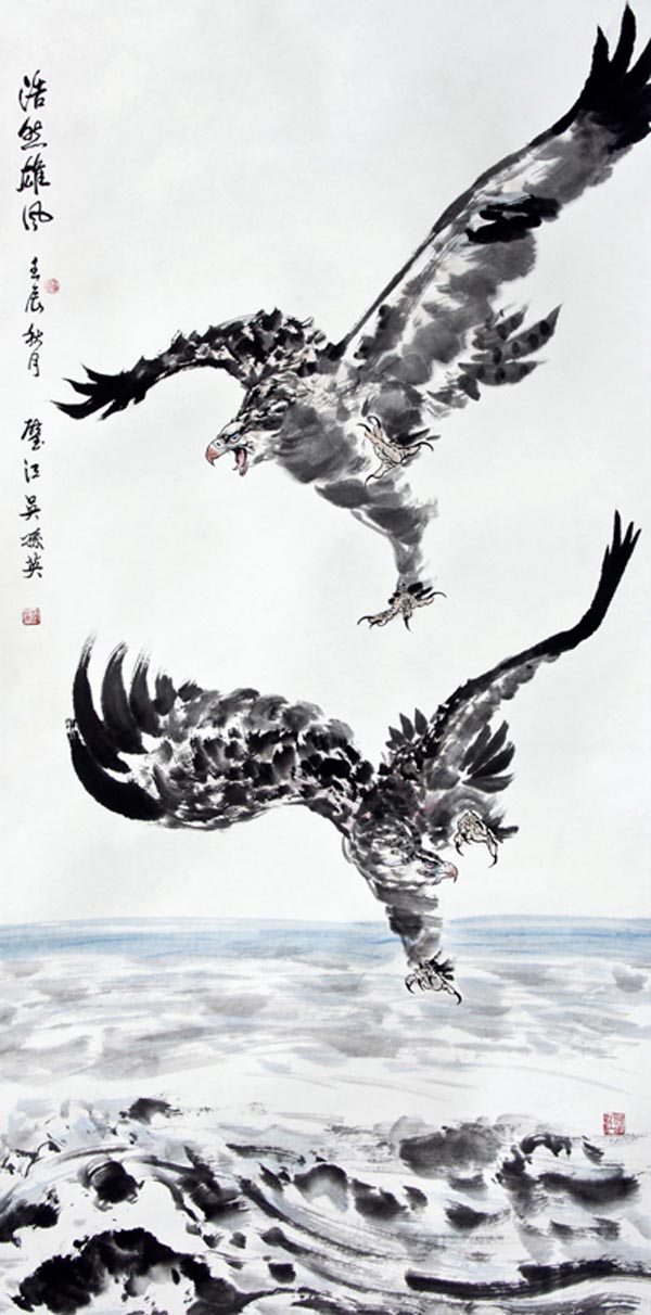 吴孙英,字,璧江,1943年1月5日生于福州城门璧头,本科学历,国家一级美术师,中华人民共和国美术师评审委员会委员,中国国民党革命委员会福建省委员会党员,2009年被聘为北京人民画院理事、十八大文艺代表人物荣誉称号。2014年求是红旗杂志社艺术顾问,中国政协福州台江第四届委 员,文体组副组长。系中国国际文艺家协会博学会员、中国画家协会理事、福建逸仙艺苑理事。中国老年书画研究会创作研究员。中共中央党校对吴先生的先进事迹 被正式收录在《求是先锋--新中国六十周年的理论与实践》丛书中,并在"荣誉证书上对理论与实践探索中取得优秀成果的肯定.现为《海西松鹰书画院》院长。创作门类涉猎广泛,人物、山水、花鸟三科,科科投入,都出精品。 1988年、1993年先后在福州,马来西亚及新加坡展出83幅国画作品,当时东南亚最有影响的《新洲日报》、《南洋商报》、《南洋新通报》等多家新闻媒体对他做专题报导、并赞此展览为中马文化交流做出积极贡献。当地文化艺术界颁发给他(金龟奖)。 2000年创作的巨幅国画《世纪伟人邓小平》由福建省美术家协会等举办的大展在福州五一广场大厅展出,并在《福建日报》头版刊出。他饱蘸深情的笔锋,塑造了我国改革开放的总设计师邓小平的光辉形象。 2001年在福建省纪念辛亥革命九十周年书画大展中,创作的巨幅国画《民主革命先驱孙中山》在福州画院展出。 2009年在新中国六十华诞之际。在北京民革中央画院举办《吴孙英晋京画展》。 展期3天。来自首都书画界及新闻媒体一百多人参加开幕式。展出100多幅山水、人物、花鸟画,其中鹰图达80多幅。特别是巨幅国画《雄视环宇,中华腾飞》 的60只雄鹰图,谕示着新中国成立60周年的伟大复兴。 在京的有关兄弟画院的领导出席了画展的开幕式,并讲话。 全国政协常委、民革中央副主席、民革中央画院秘书长何丕洁,赞誉吴孙英晋京画展,展示了福建海西文化特色,是以书画会友,以书画歌颂新中国成立60周年, 以书画赞扬改革开放的成就,是促进各地文化艺术交流的大喜事。福建逸仙艺苑秘书长,中国老年书画研究会常务副会长等都对画展的影响力作出了肯定。首都《中 国老年书画报》、民革中央机关报、《福州晚报》、《文化生活报》、《东南快报》福建《书画艺苑》等多家报刊以及光明日报网、国内新闻飘香采集网,中国广播 电台网、中国经济网、中国在线艺术网、国内新闻中心新浪网、华艺艺术中心网、中国书画信息中心网、民革中央民革新闻、dhkb东南快报网、世纪伟人邓小平 资讯、福州晚报数字网。福州文化生活报网福建老年书画报网等十多家网对此作了专题介绍,赞扬吴孙英笔下的雄鹰佳构,朴面而来的是雄风浩荡、正气凛然、神采 飞扬、大气阳刚、意境高旷、泼辣淋漓、豪迈放达、刚健质朴、气势撼人,是画家喷涌而出的情感的自然宣泄具有强烈的视觉冲击力和震感人心的力量,可谓(磅礴 气势君子风)。在形与神的完美结合中,画家不仅写出了雄鹰外在的矫健身姿体态美,更刻画出了雄鹰傲骨天成的内在英雄气质与神韵,在激荡酣畅的水墨中显示出 巨大的张力,宛如感人心魄的交响乐章,其中的意味、境界、情趣和画家的美学追求跃然纸上。 雄鹰是历代画家衷爱的绘画题材,历史上涌现出了不少画鹰的名家大师,远的不说, 如清代的八大山人、高其佩等,近现(当)代的齐白石、高剑父、潘天寿、徐悲鸿、李苦禅、孙其峰等人。他们均为后人留下了大批画鹰的名作精品,令人叹为观止,生 出无限感慨。千百年来人们都把雄鹰视为英雄与胜利象征而讴歌赞美,因为雄鹰形体挺拨雄健,气宇轩昂,威猛强悍,傲骨天成,有(回眸一瞥百鸟寒)之美誉。吴 孙英近年来创作的百鹰图,不管立、蹲、飞翔、搏击、皆取奋进之姿,昂扬之态,一直向前。它翱翔于万里云天,或搏击于劲雨狂风,或屹立于峰巅绝壁、或兀立于 苍松高枝,或盘旋于辽阔海面。它只知奋进,代表的是一种精神、一种追求、一种理想、一种信念、一种气质、一种力量。吴孙英以中西画相结合的特点在多变的姿 态下辅以广阔的背景,使笔下的鹰横空出世、摩天绝海、气否云梦的雄浑和气势,给人以强烈的个性感和无限的张力、震感力和精神的穿透力。 在当今高手林立的中国画坛,吴孙英以(鹰)创作的系列雄鹰题材作品,令人耳目一新,为之振奋,深受人们的关注和喜爱,备受收藏界的青睐,被誉为当代海西(鹰派)画家。 孙英(鹰)除了酷爱并擅长写雄鹰外,亦擅长人物、山水、并因此闻名于当今中国画 坛。出版的《吴孙英中国画集》荣获国家图书馆优秀图书荣誉证书。作品被选登在中国文联出版社出版的《中国书画年鉴》,并入编第二十九届奥运会的精美礼品 《中国现代名家名作》系列集。作品流传到美国、日本、东南亚各国及台湾地区,深受赞赏。 吴先生笔耕不辍,作品时在《人民日报》、《中国化工报》、《中国书画报》、《福 建日报》、《福州晚报》、《东南快报》及国内外媒体刊出,并在中国画报出版社、人民画报社、世界知识画报社。中央文献出版社等出版的大型画册上发表。艺术 简历载入中国人事部出版的《中国人才辞典》、中共中央党校《求是先锋--新中国六十年发展的理论与实践》、《世界名人录》、《世界优秀专家人才名典》、 《世界文学艺术家大
