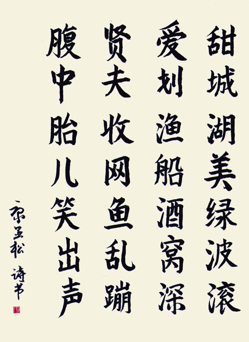 康显松,1936年10月2日生,四川省内江市东兴区人,师专文化。1956年在重庆读军校,1961年参加工作,1996年退休。从小爱写毛笔字,10岁开始为乡亲写对联。现为北京市写作学会诗书画委员会研究员,北京华夏博学国际文化交流中心会员,内江市东兴区作家协会会员,中国书画摄影家协会会员,中国海峡两岸书画家协会荣誉副主席,北京聚缘国际文化艺术中心书画家协会名誉主席,深圳市艺海夕阳书画院名誉院长。1955年开始在报刊上发表民歌作品,至今已在本地报刊和四川《晚霞报》发表诗歌200余首。退休后常练书法和写诗歌。2008年6月22日,《内江日报》以《康显松与内江党报五十年的民歌情缘》的醒目标题,热情洋溢的报道了学习写作民歌的历程,并配发和妻子同看贵报的图片。自2005年以来,书法和诗歌作品参加《小平您好》、《纪念解放军建军85周年全国书画联展》、《纪