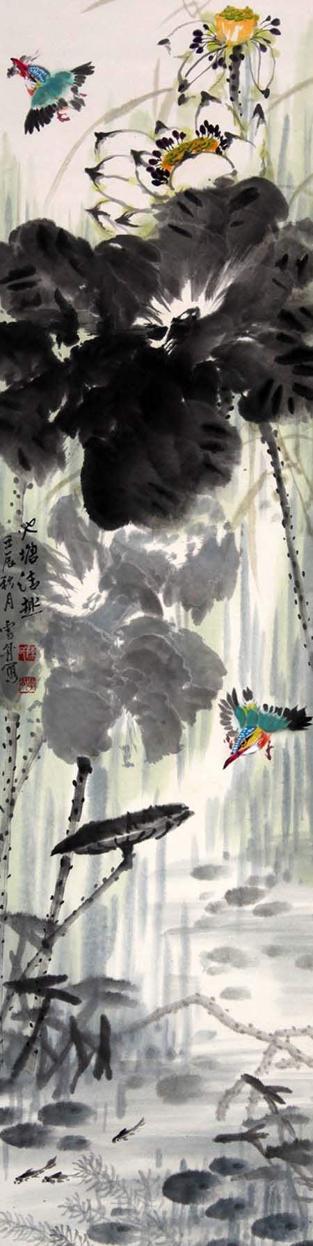 “一个有成就的艺术家,就是一个不追逐名利,默默辛勤耕耘者,他会把毕生的精力沉浸在充满阳光的生活中。”这是学周的自勉诗,他也真的是这样去做了。事物的本质是自然,艺术的标准也是自然。从充满阳光的生活之中去汲取,创造,而非空中楼阁里杜撰出来的作品,那韵味自然是完全不同。阳光下,开掘出的美丽,温暖,和谐使得他笔下的一切都是格外的澄澈、明丽、清纯、优美、活泼、谐趣,充满了生机和活力。且不说那幅“梨花春水鳜鱼肥”的美景会带给你多少浓浓的诗意和联想;也无须论那“鸡族的天伦情乐”,给了你多少亲情温暖的享受;即便是萧条隆冬的冰雪中枯竭了的荷塘,他笔下的麻雀《戏雪图》也能让你感受到春天的热闹,温暖和美丽。