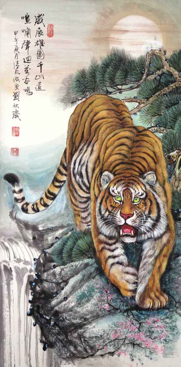 刘秋琼,艺名清风渡叟,湖南湘乡人,当代实力派书画家,高级教师。湘乡市美术家协会、书法家协会会员;现任中国古代怀素书法艺术研究会会员、南岭书画院特约书法家、湘潭市老年书画家协会会员、湖南省书画家协会会员、北京东方美术馆艺术家协会会员、画圣吴道子艺术馆理事等。鄙人一生淡泊荣利,“寒江独钓”勤奋务实。擅长国画、粉画、书法、雕塑、篆刻及宫扇的制作。几十年来,锲而不舍,潜心书画研究,笔耕墨耘,致力不懈,勇于创新,不受陈旧所束,重在传统、创新、造化之间,不断体悟,汲取,追求名家之作,中西融合,独具一格。主攻老虎(猫科)、花鸟、山水、人物。自1980年以来,书画作品同时走向社会展览、收藏并被选入《中国美术家选集》、《中国书法家选集》、《新中国美术家选集》(1949—2009)及《中国书画家志》等等;通过几十家媒体,作品被邀参展,结集出版,享受过国家及省、市级几十多项荣誉、奖状。夕阳几度,霜叶正红。2012年应邀接受《中国贸易报》、《中华建筑报》两报两会记者及中国书画界几位同仁专题采访,部分作品于2012年5月10日在《中国贸易报》“贸易推广专业”媒体平台刊登;此外,书画作品经常在《中国书画报》、《陇风诗画刊》及《老年人》等报刊杂志上刊登发表。另有书法作品于2014年4月14日在中央数字电视书画频道(第138期)“第四届迎新春书画作品展播”中播放。