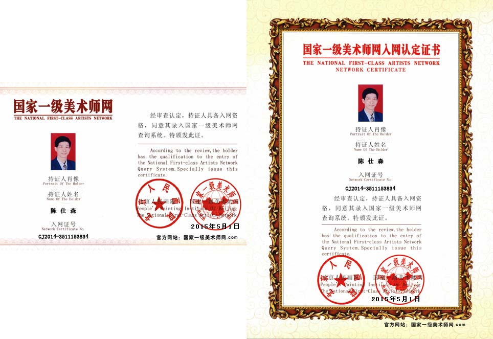 陈仕森,福州市,毕业于北师大第三届山水画高研班并任班长。师从周逢俊导师,中国美术家协会福建分会会员,中国书画家协会理事,福建生态书画院副院长,福建广协书画院副院长,福建逸仙艺苑美术专委会副秘书长,中国艺术研究院高级画师。作品三十余次在全国及国际获奖。