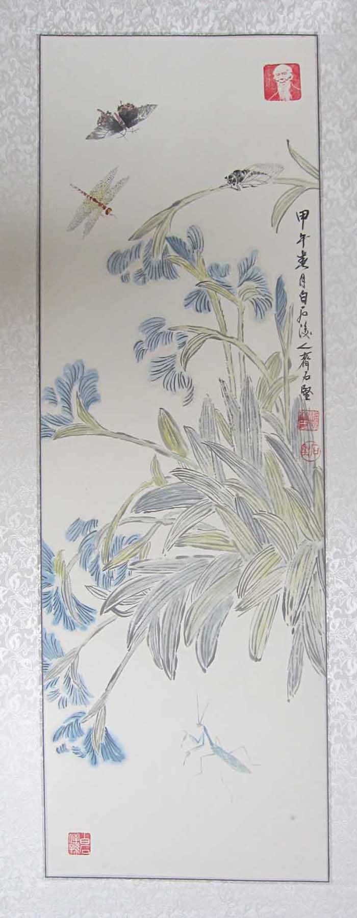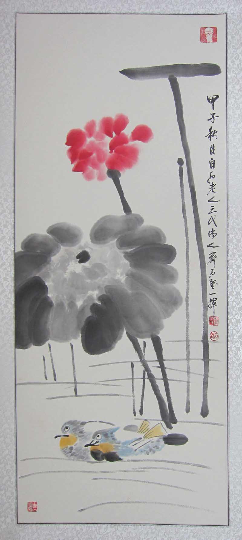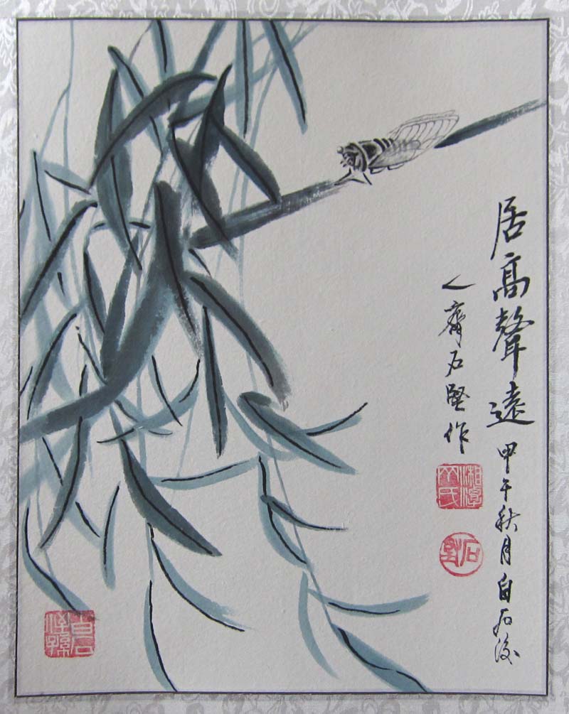 他的作品古韵犹存,从容而雅,笔墨运用深得其叔祖父白石老人的精髓,又有自己的风格,清新淡雅,颇有回归自然的朴实。时而严谨细腻,时而洒脱奔放,尤其对虾、蟹、蝉、蝶、鱼、鸟的创作表现的水墨淋漓,达到炉火纯青的地步。于心控中沥成画面,犹如交响乐章,旋律有起有落,读来令人叹为观止。