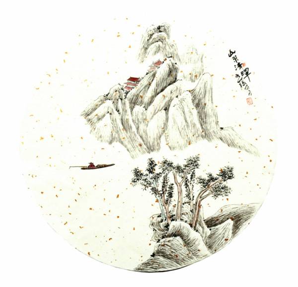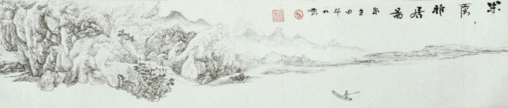 九藤远朔汉唐绘画,近取亲邻右舍民俗精艺,博众长为吾用。以笔传情,登五岳,临四海通达而知变。明哲脱化,沐自然处虚静,因墨生熠贯注人文精神。以魏晋所萌畅神为初始,童稚率真质朴为主导,探究画之脉络法度,追本溯源孜孜以求。九藤浸淫而专注于山水深彻意境,赋于艺术最真诚蒙养。从搜妙创真本我立意,细研描摹,以古贤先辈法度探其精髓。师古而不复古,学古而不思怠,学究五代无我神趣融汇,汲取宋元高古醇正。董、巨、范宽、郭、李、黄、王、倪云林。山川神遇心手相追极大观如斯,彻夜临池不辍,欣欣然而然,兹品位中三味,亦感渭良多。孔子云:质胜则野、文胜则史,文质彬彬、然君子。宗心古法,立志出新,不求早脱,亦不受法缚。情为艺质,画以情论,博采众涉诗歌词赋。观史鉴今,文而化之。