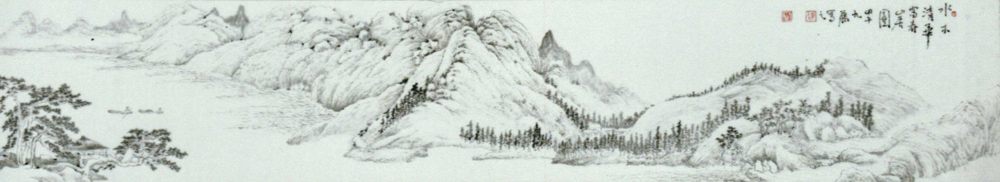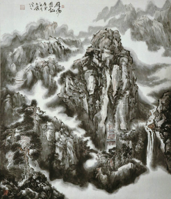 书画之道实心迹也,六法而论,首以气韵,人以品论,艺以格评,画以韵格胜。九藤山水融合北宗质胜严谨厚实,本体技法丰满极臻,斯为南方秀水蕴育流年,笔情墨趣阔然天地。成大格局生至正,至中、至刚之大气象。精神苍浑审美定位,仰石涛,笔意纵恣脱尽窠臼,跌宕百姿千态。循先古为师,以自然摹本,聆导师谆教。饱览五岳三山,畅游四海九方,涉险滩登奇峰,笔底气象胸存万象。