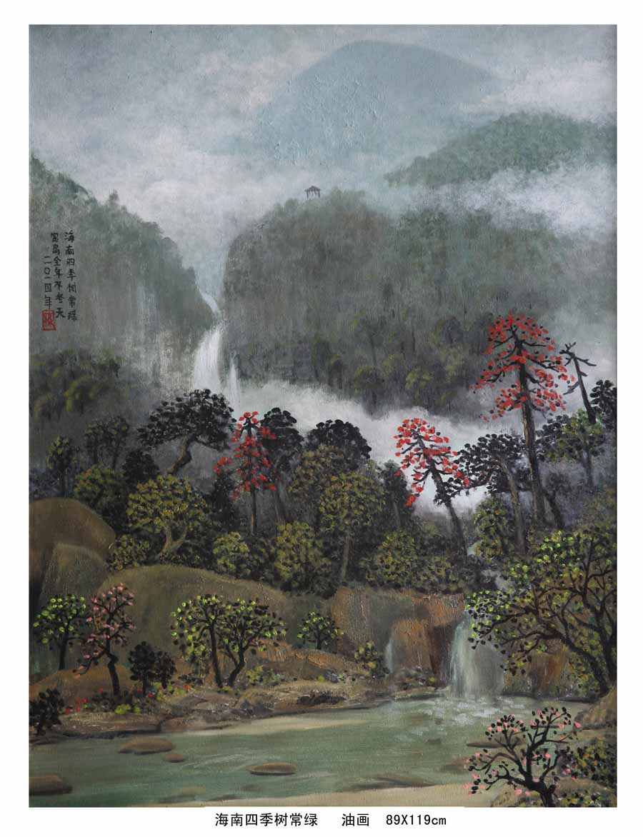 孙国森,1939年生,海南省屯昌县人。中国美术家协会会员,一代书画大师,获中国世纪专家,书画艺术名人,中国教育家名人,中国书画名家研究会名誉主席,中国现代艺术研究会主席,中国民族文化研究院理事会副理事及荣誉院士,中国收藏学会副会长(中国最具收藏价值的书画家,本人和世界收藏家联合会、世界富豪俱乐部和中国紫光阁国礼中心签约作品销售和拍卖),中国艺术十大领军人物和“国际金马艺术奖”终身成就奖等荣誉称号。50—60年代跟李剑晨教授和著名画家张眉孙学习水彩画。1962年在海口市举办个人画展,作品《创种》被广东省群艺术馆收藏,多次参加省、全国美展。作品《海南特产》被中国美协外联部选送美国展销,2014年参赛中国油画作品《丰收在望》荣获第三届全球“风云人物杯艺术成就”金奖。出版有《孙国森美术作品明信片》、《孙国森水彩画集》和《孙国森油画集》在全国新华书店销售。