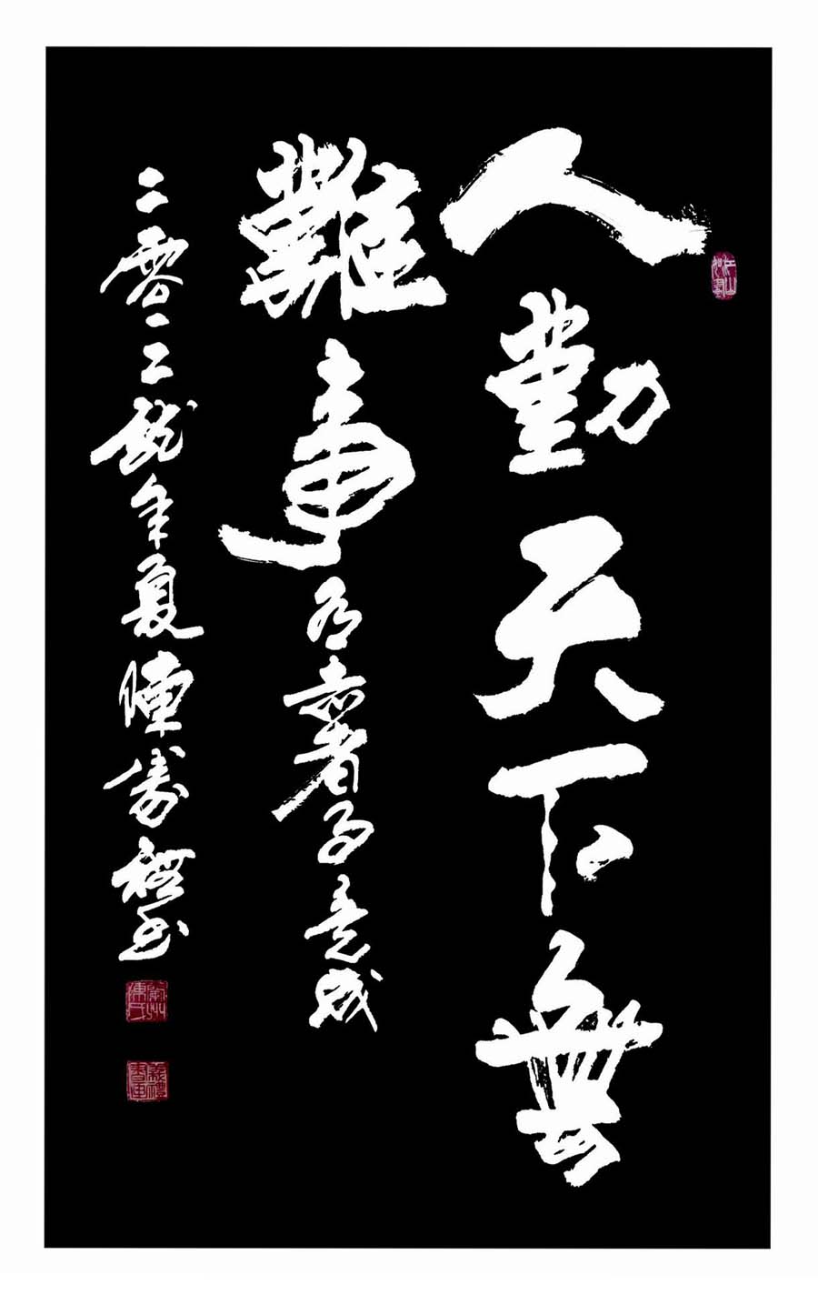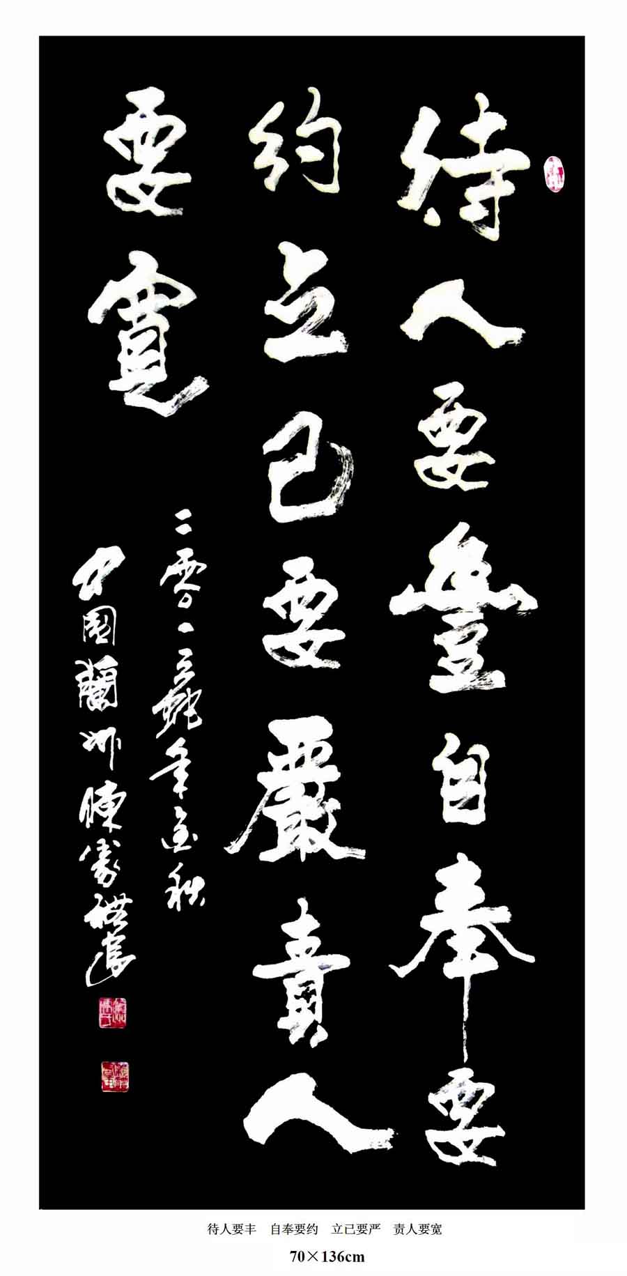 1983年会同中国著名书法家黄苗子,为中国镍都等三处大型纪念碑书写了碑文。2007年赴邀柬埔寨访问,为西哈努克亲王赠送了“佛”字,被该国文化部授予“友好文化使者”的光荣称号。2011年辛亥革命100周年,9月17日在联合国大厦美术馆展出,作品深受联合国秘书长潘基文的高度点赞及中外华人的好评,二副作品分别荣获金奖。2009始,多次会同欧阳中石、刘大为、沈鹏、范曾、李铎、张海、刘文西、白雪石、孙其峰、吴冠中、张仃、赵无极、靳尚谊等书画大师,作品先后被编入《60年60家》、《韩墨千秋》五人精装画册,《九十年九大家》《中国报道名家中国》中共十八大专刊。《当代名家书画作品收藏指南》、《中国文史出版社(中国美术年鉴2013书法卷)》、《中韩书画名家》、中国文联出版社出版的《文脉传承古今文艺作品选粹》、中国商务出版社《强国之魂中国艺坛领军人物》等书画重点刊物,在此期间,先后为福建、江苏、山东、广东等地的企事业单位书写单位名称;为山西杏花村酒庄、贵州茅台镇酒业集团书写了扁牌、名称;2013应山西恒山风景名胜区管委会的邀请书写了大型石刻“道法自然”“北岳恒山”以及寺庙柱子上的对联等等。