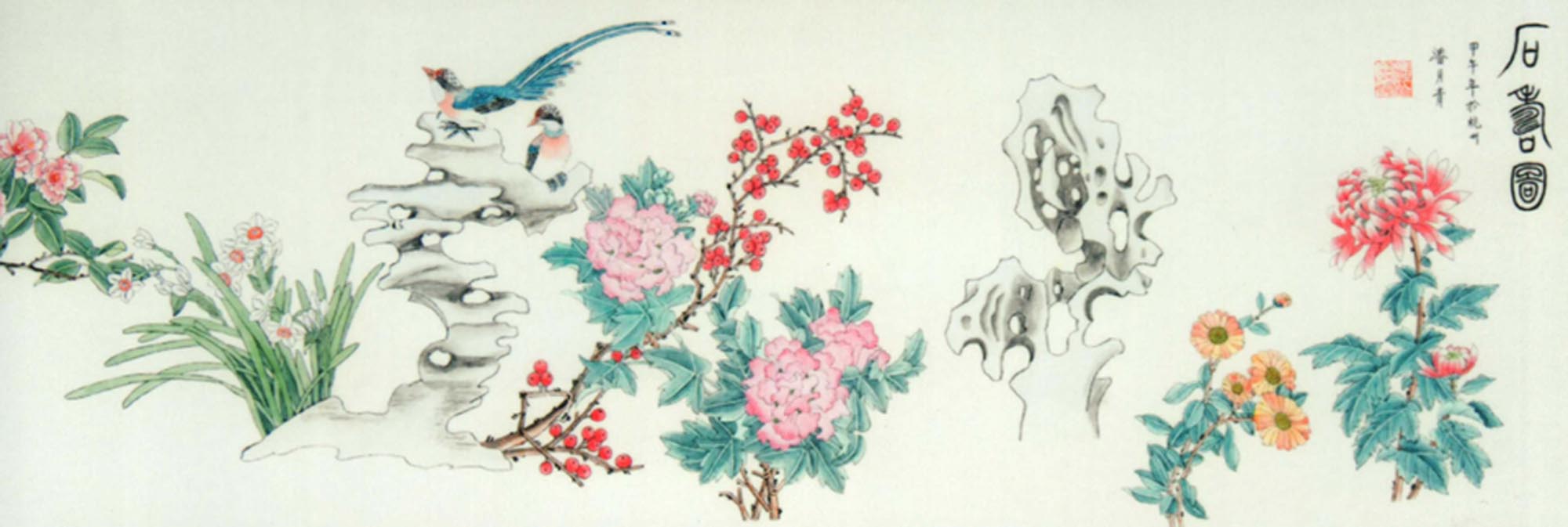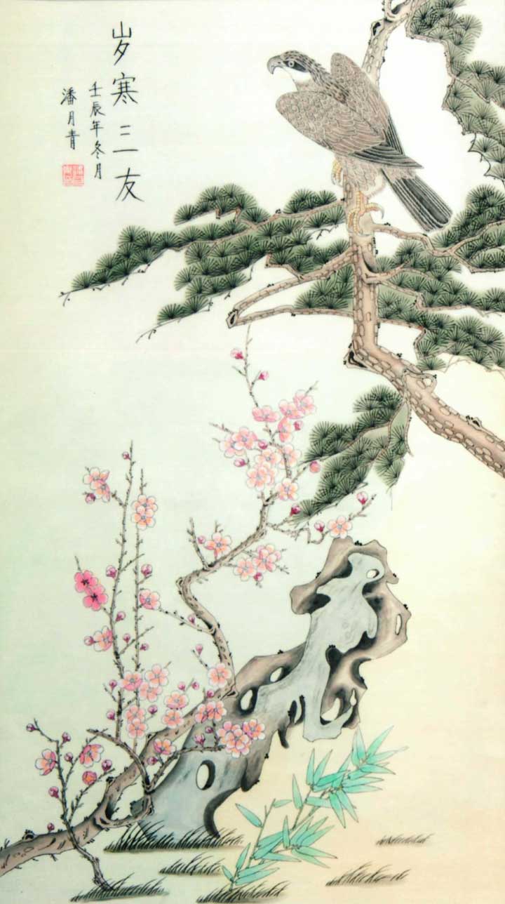 潘月青的中国画继承了宋代院体的画派,博彩了明、清及近代诸家,既有较深的灵活的运用技法,又有明显的个人风格与特点;其画风朴实,刻画细腻精致。在坚持深入生活创作实践中,追求现实性传统画的现代化,使中国画富于内涵,达到雅俗共赏的目的。中国画必须面向大众才有顽强的生命力。