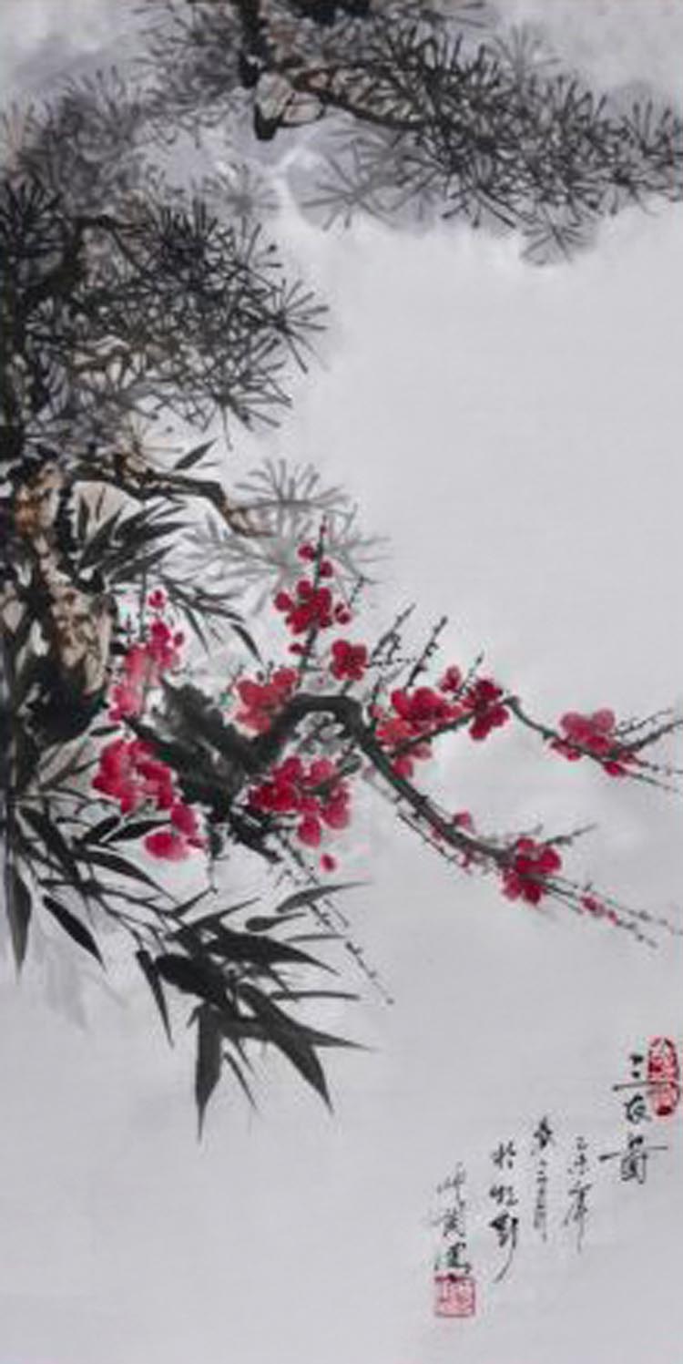 对于传统艺术,他很严谨,从郭熙,黄公望等古代艺术风格入手,到近代齐白石、张大千、钱松岩、李可染等大家的艺术形式,他都潜心揣摸研究,不扎不扣,不论山水花鸟都力求对艺术的精益求精。