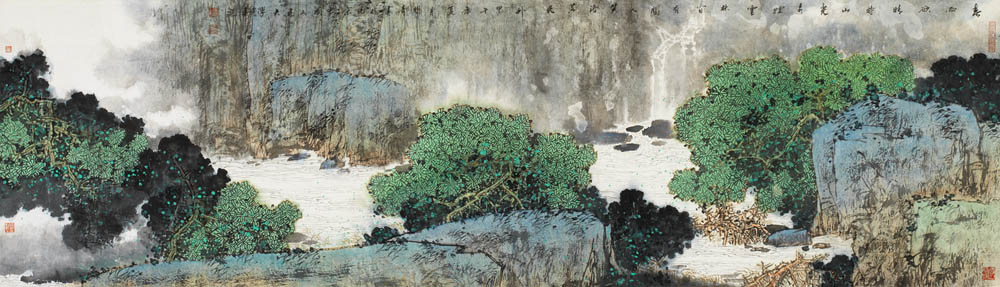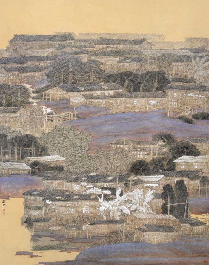 2010年12月《溪山春晚》入选全国首届现代工笔画大展。