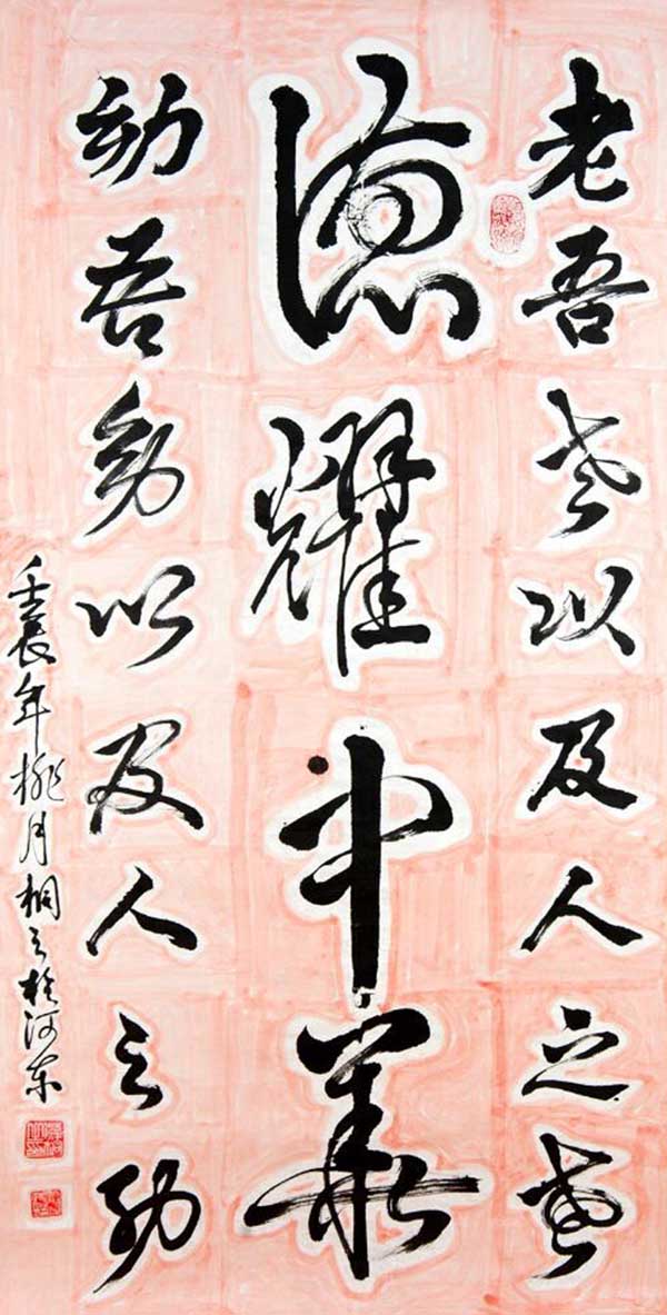 2008年四川汶川地震,我写了榜书“虎”字,转由中国红十字会拍卖抗震救灾。“真情大爱绘丹青,重建家园做奉献”,特授予“中国书画名家慈善贡献奖”及“2010、2011、2012感动中国艺术人物”、“国际知名文艺家”及“当代著名红色艺术家”荣誉称号。国内30多家艺术单位曾邀聘为高级研究员、院士、终身名誉院长、副院长、顾问等称号。